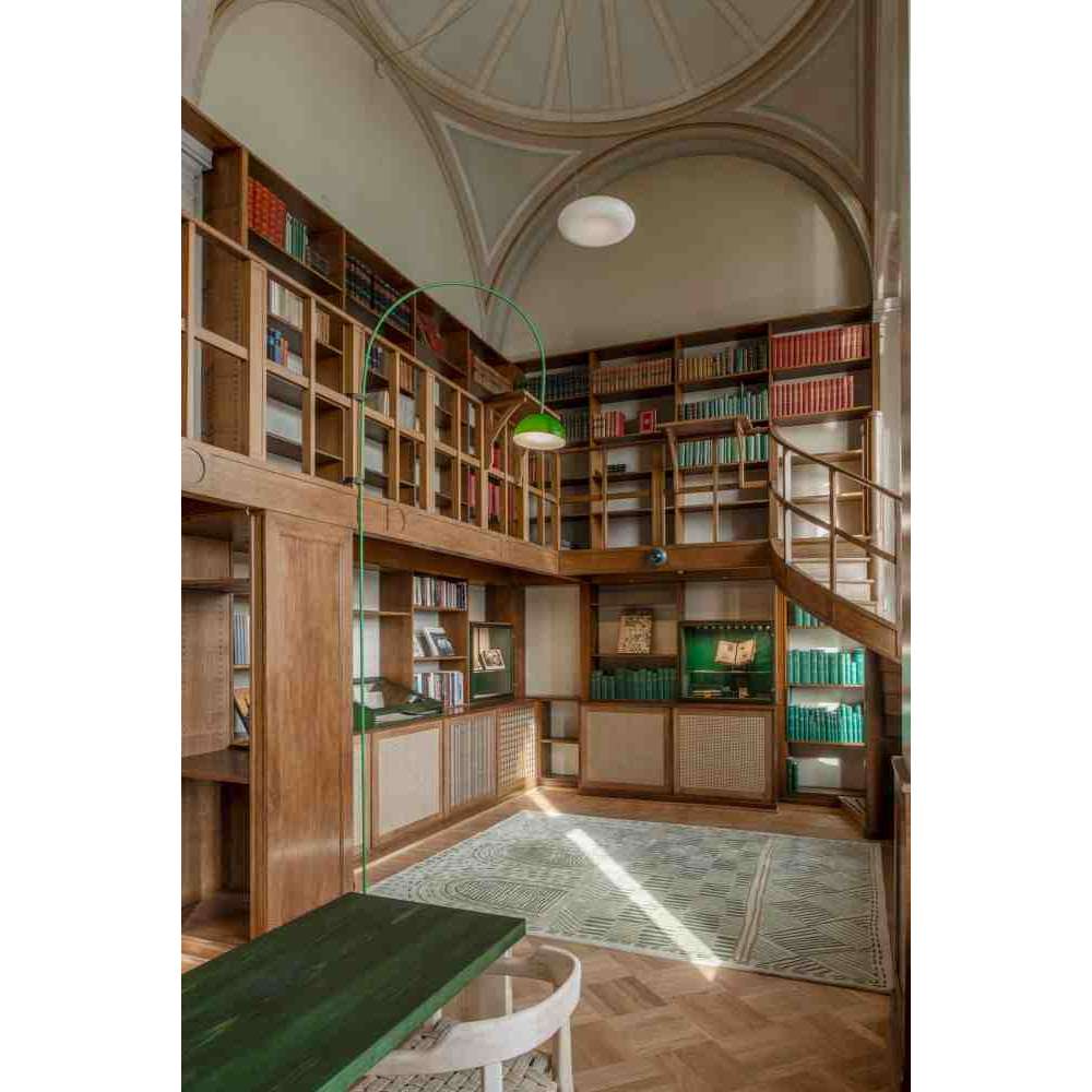 Biblioteket oznacza bibliotekę w języku szwedzkim. Jest to ręcznie tkany dywan z wzorem, który stanowi mieszankę pierwszych szkiców Emmy dotyczących Starej Biblioteki. Dzięki trzem łukom i trzem dużym oknom u góry, w środkowych rzędach książek w starym regale, au dołu nowo ułożonym dębowym parkietem.