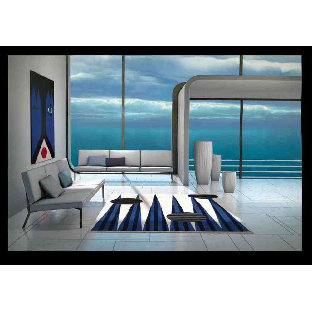 Art Money Blue to ręcznie tkany dywan z kolekcji „Art Money Collection”. Jasne tło z charakterystycznymi niebieskimi i szaro-czarnymi geometrycznymi kształtami. Prawdziwie ŚMIAŁY i elegancki dywan.