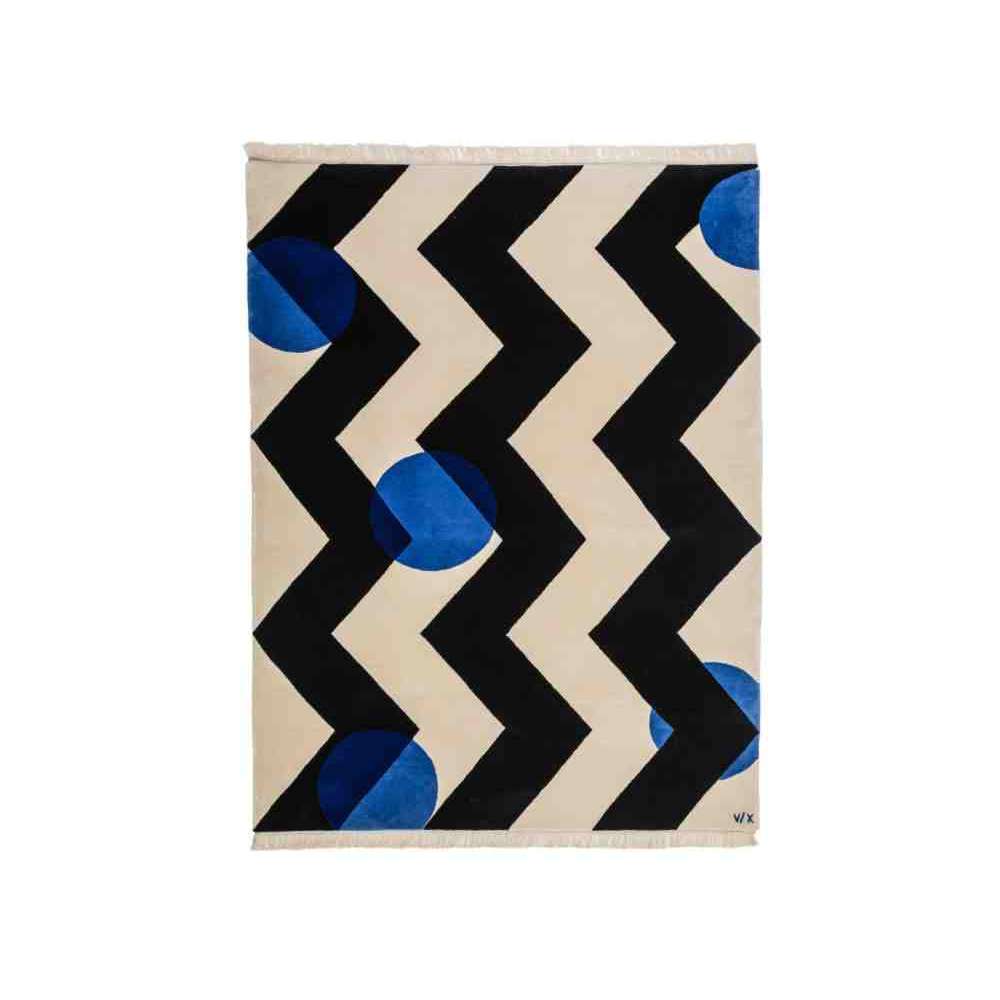 Cherry Tree Blue to ręcznie tkany dywan z wełny, to interpretacja Cecylii kwiatu wiśni, ciemnych nagich gałęzi z kwiatami wiśni, wykonana w czysto graficzny sposób. Ta edycja jest wykonana w kolorze NIEBIESKIM.