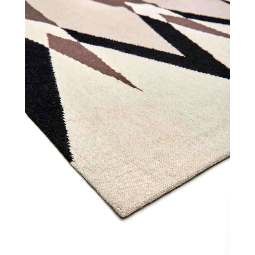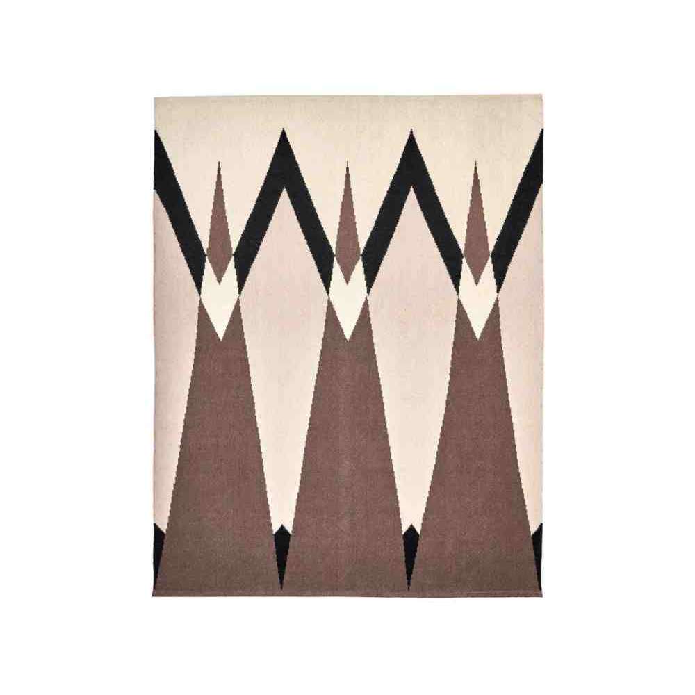 Coming Through Brown to dywan wykonany przy użyciu ręcznego krosna stołowego, który jest codziennym dywanem bez runa. Posiada geometryczny wzór w neutralnych brązowych kolorach, jest również dostępny w kolorze indygo.