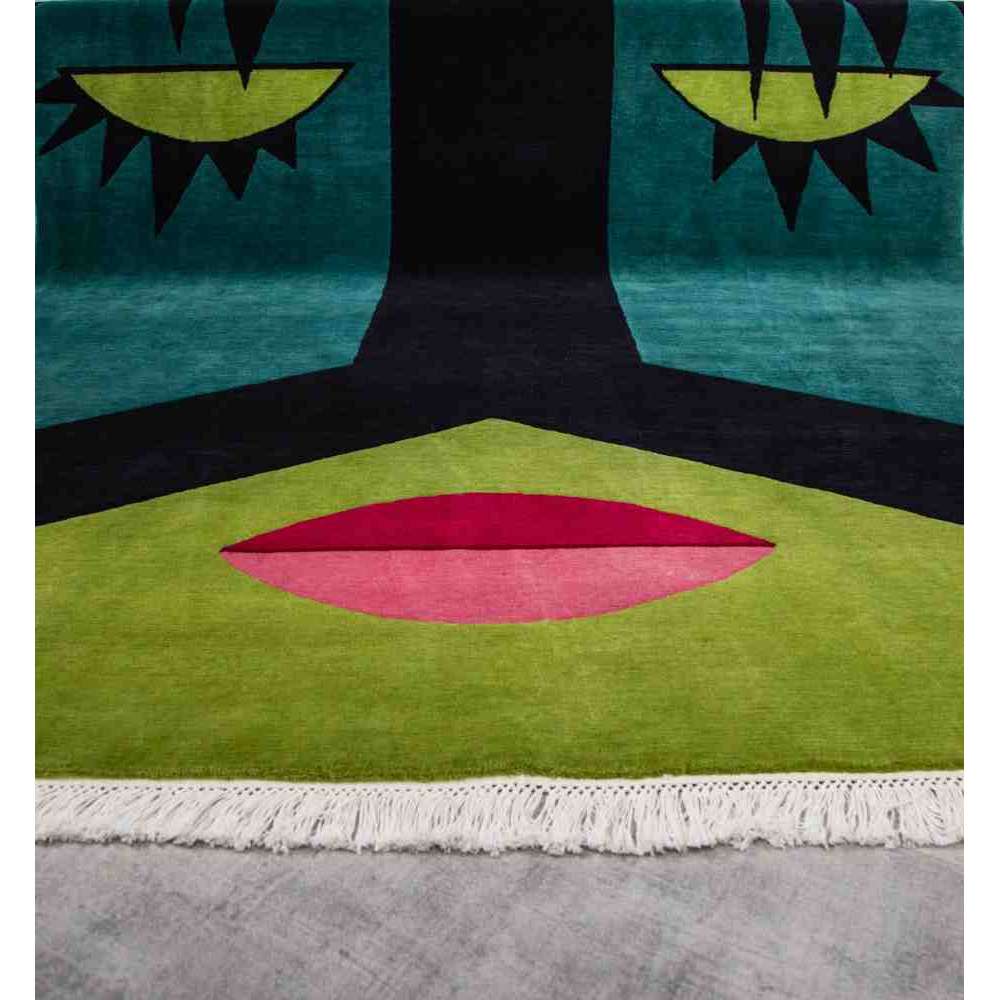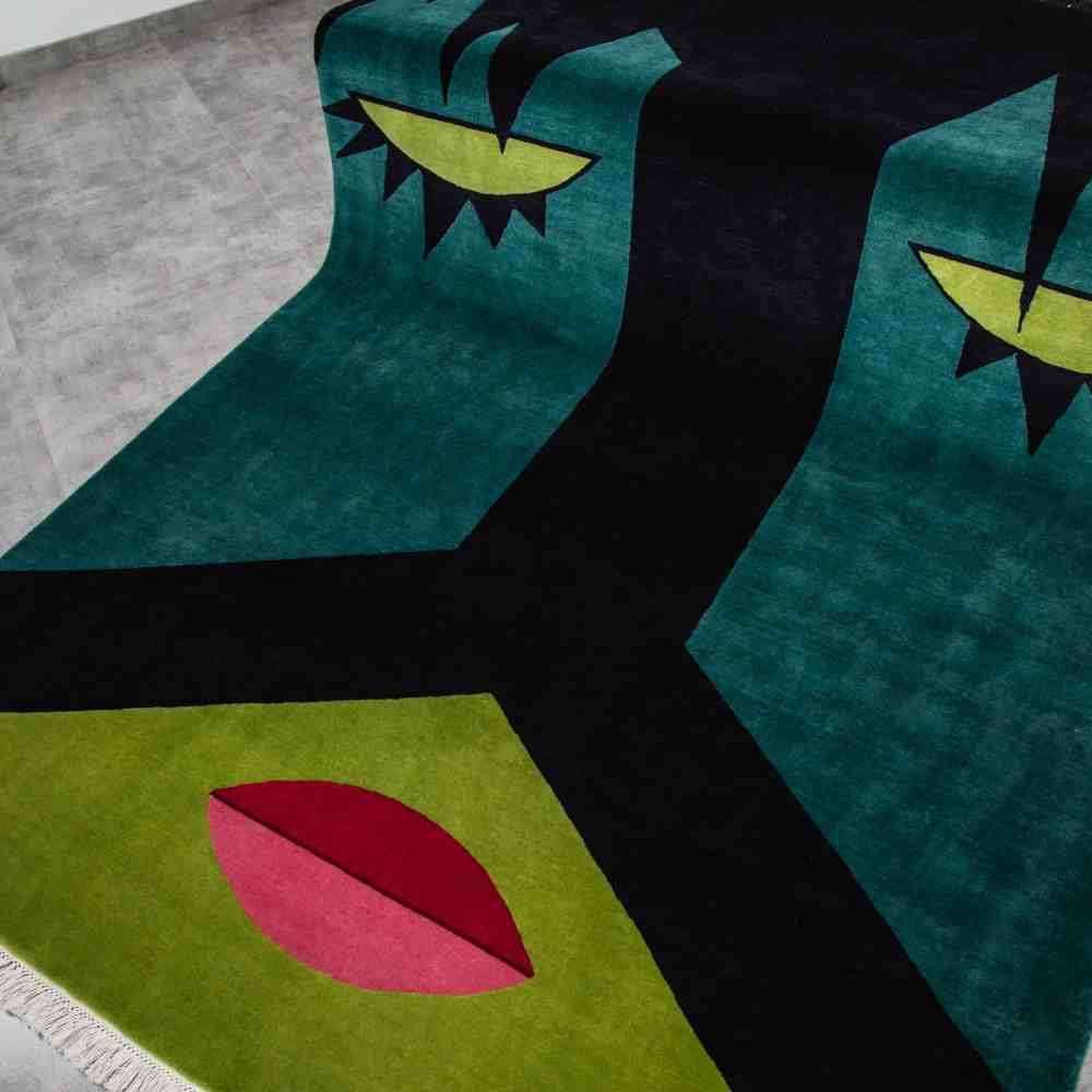 Dobranoc to unikalny kawałek ręcznie tkany z wełny nowozelandzkiej. Cecilia pracowała nad ścisłą geometryczną interpretacją śpiącej kobiety. Frędzle na górze są koloru czarnego, aby przedłużyć stylizację włosów.