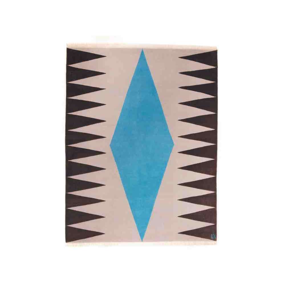 Interior Blue to ręcznie tkany dywan z nowozelandzkiej wełny o geometrycznych kształtach. Dywan jest wytłoczony, aby nadać mu nowoczesny charakter.