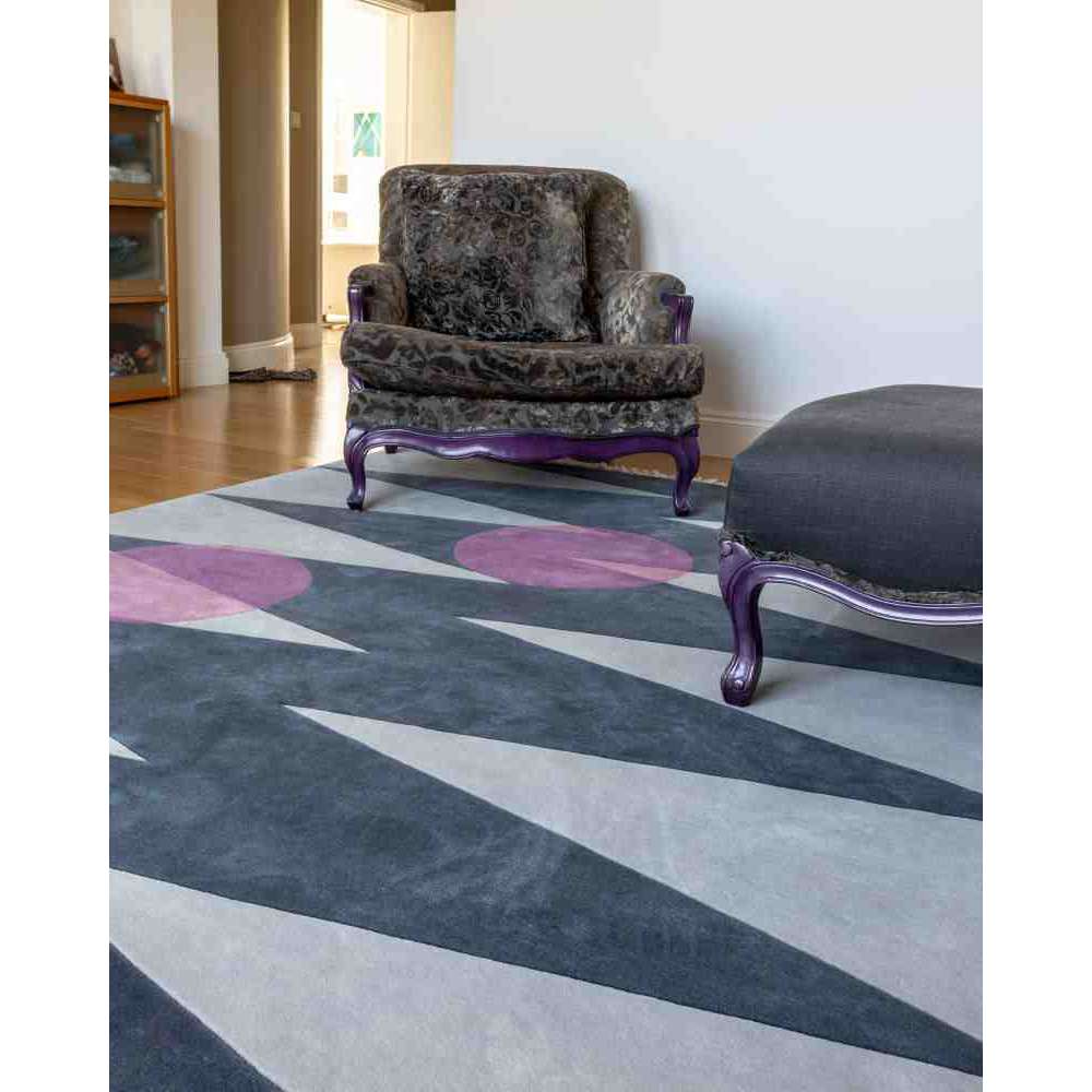 Itinerary Pink to dywan wykonany z nowozelandzkiej wełny w odcieniach szarości i bladej lawendy. Ten ręcznie tkany dywan został zaprojektowany z przezroczystym wyglądem lawendowych kropek, które przecinają trasę. Linie są wytłaczane, aby nadać im surowy, nowoczesny charakter.
