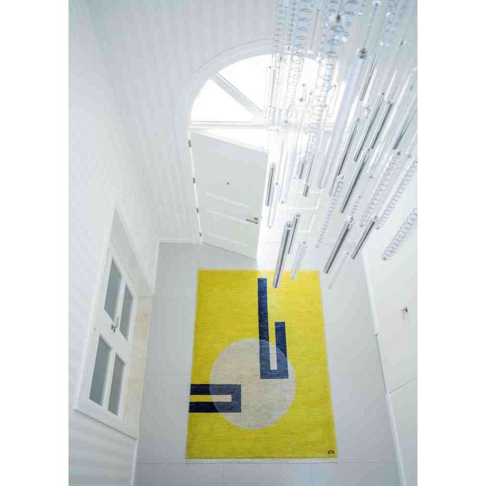 Light Hole to ręcznie tkany dywan z ręcznie przędzionej i naturalnie barwionej wełny afgańskiej. Żółty to oszałamiający naturalny kolor z poszarpanym wykończeniem, które daje różne odcienie i wpuszcza światło.