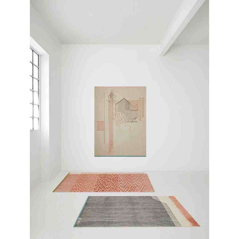 Ręcznie wykonany prostokątny dywanik wełniany w paski GAN Backstitch BUSY BRICK