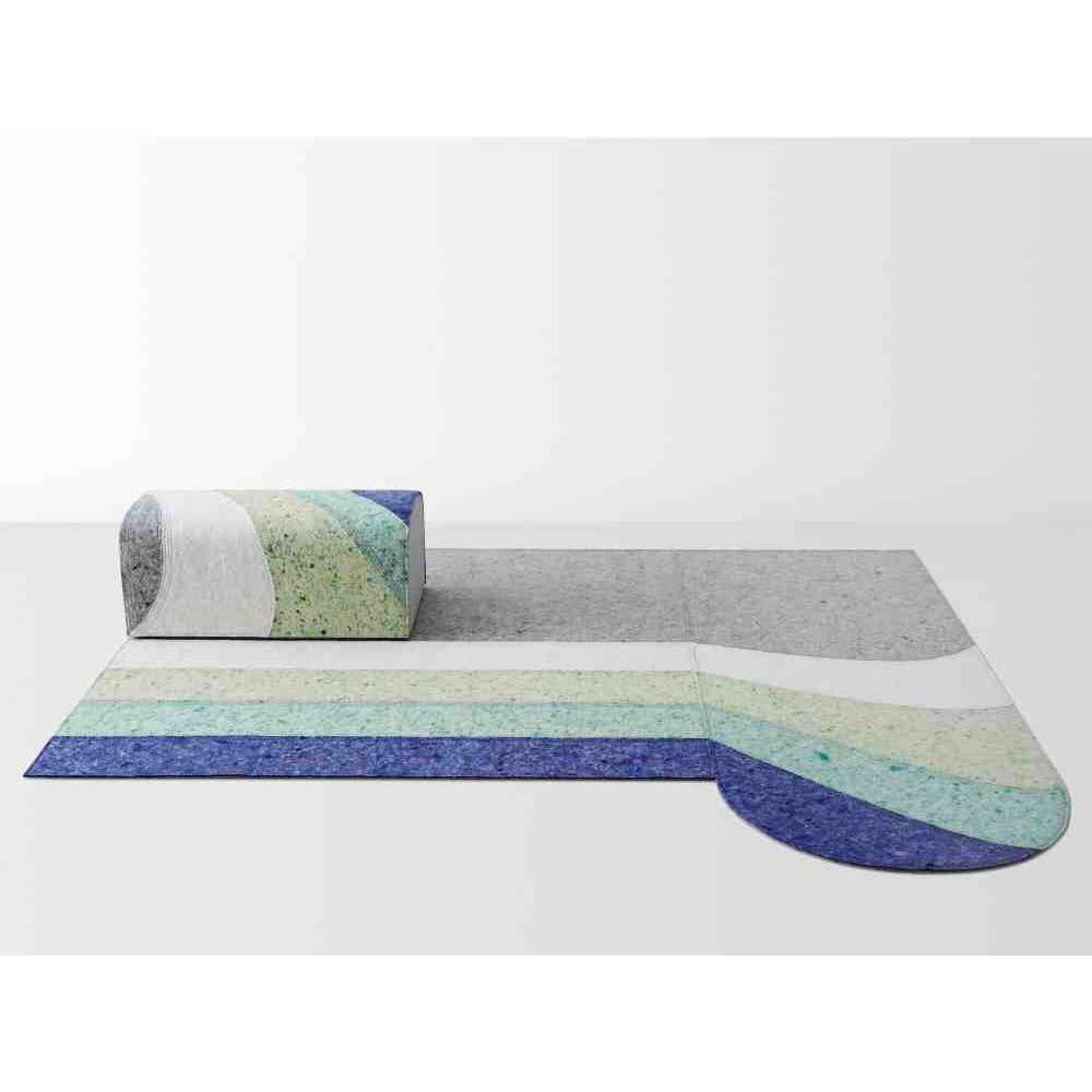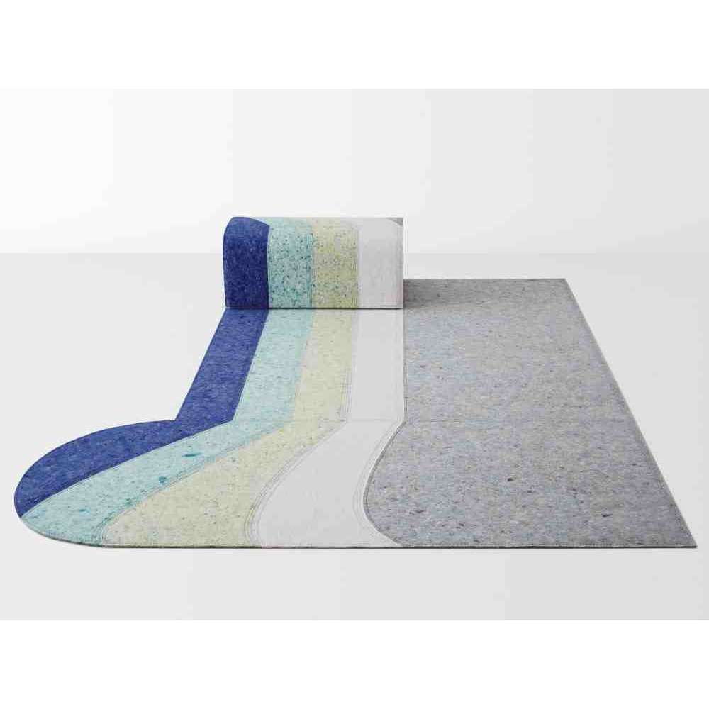 Gdy materiał został już zaadaptowany, bawiła się jego kształtami i tonalnością, tak jak tylko ona wie. Kolekcja składa się z trzech dywanów o różnych wzorach (Curve, Line i Round) oraz pufy, które można ze sobą łączyć, tworząc nieskończony zestaw bardzo architektonicznych geometrii.
