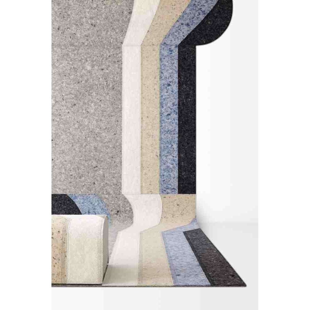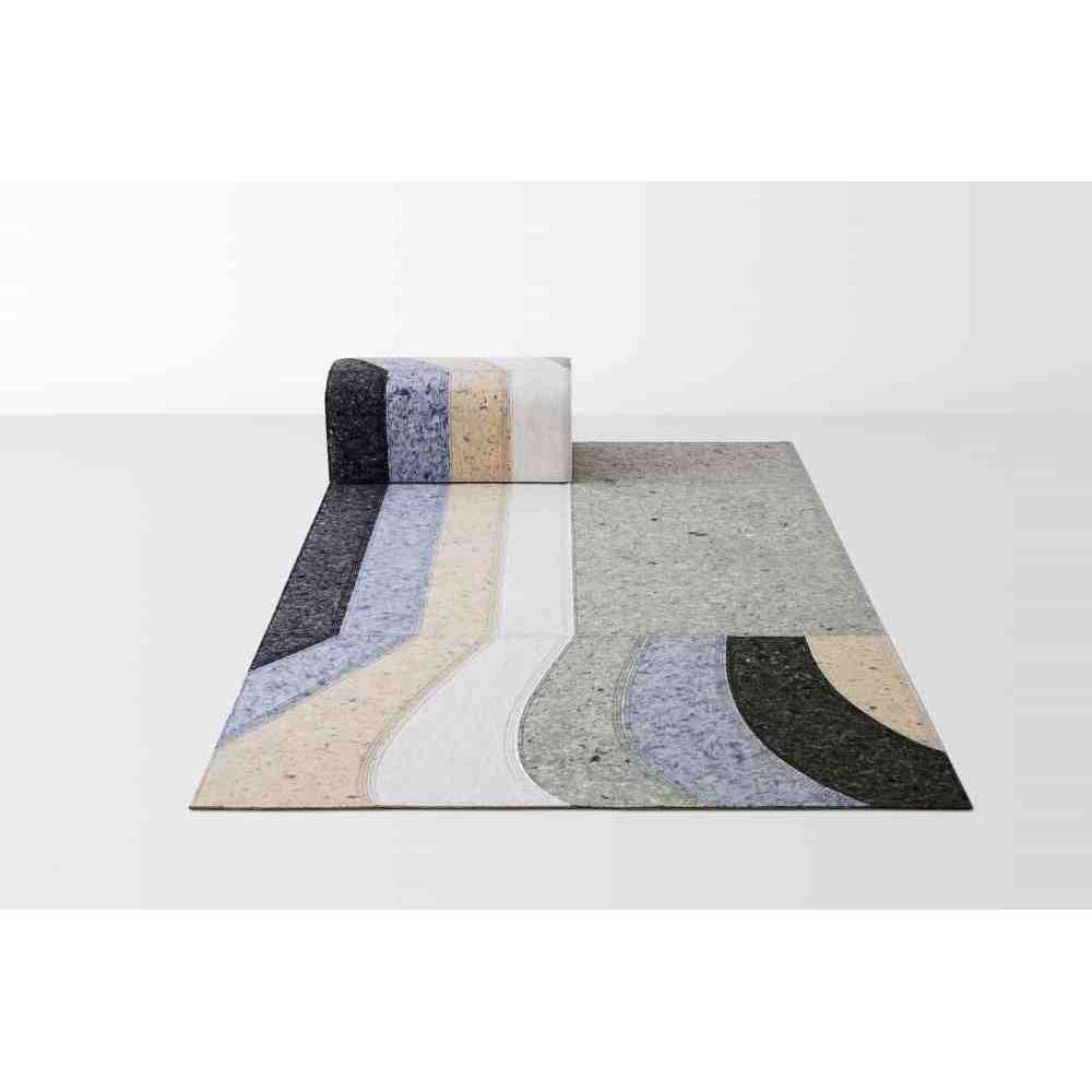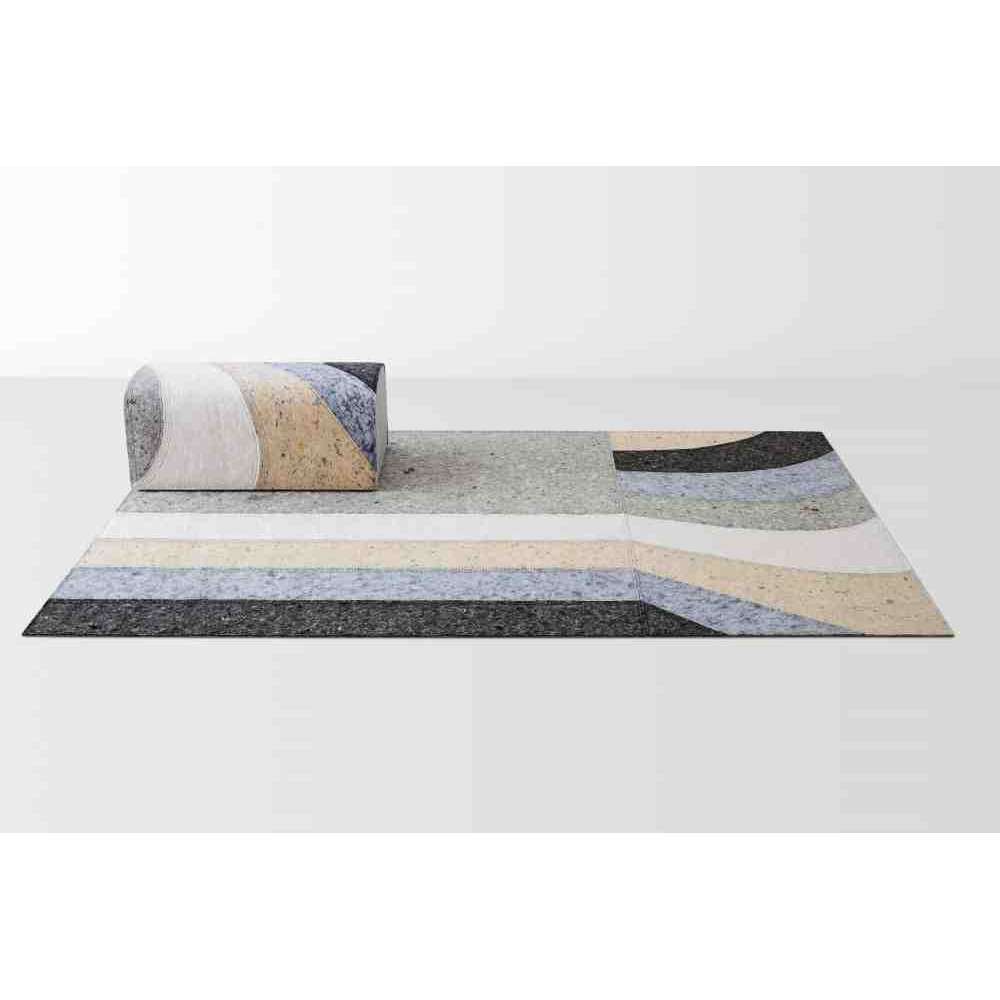 Gdy materiał został już zaadaptowany, bawiła się jego kształtami i tonalnością, tak jak tylko ona wie. Kolekcja składa się z trzech dywanów o różnych wzorach (Curve, Line i Round) oraz pufy, które można ze sobą łączyć, tworząc nieskończony zestaw bardzo architektonicznych geometrii.