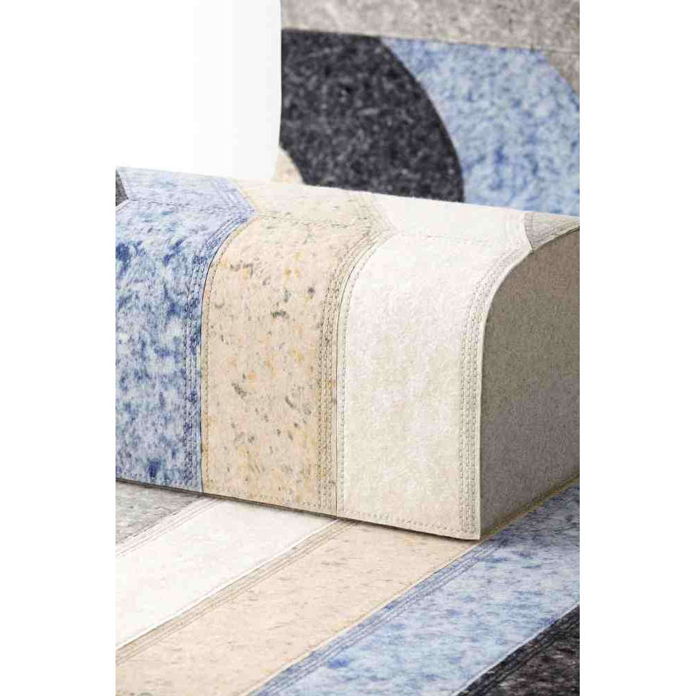 Filc był punktem wyjścia. Patricia Urquiola chciała pracować z tym naturalnym materiałem, ciepłym i plastycznym, ale także wymyślić go na nowo, zmienić tradycyjne parametry produkcyjne i znaleźć technikę, która pozwoliłaby jej na recykling wyrzuconych włókien. Połączyła więc różne kolory i gęstości wełny, aby uzyskać wygląd przypominający kamień, nigdy wcześniej nie widziany, bardzo transgresyjny.