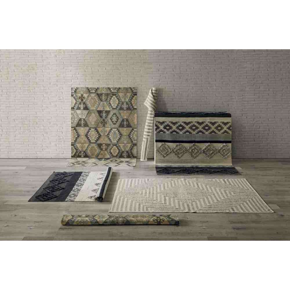 Diamenty to ręcznie robiony prostokątny dywanik z wełny i bawełny.