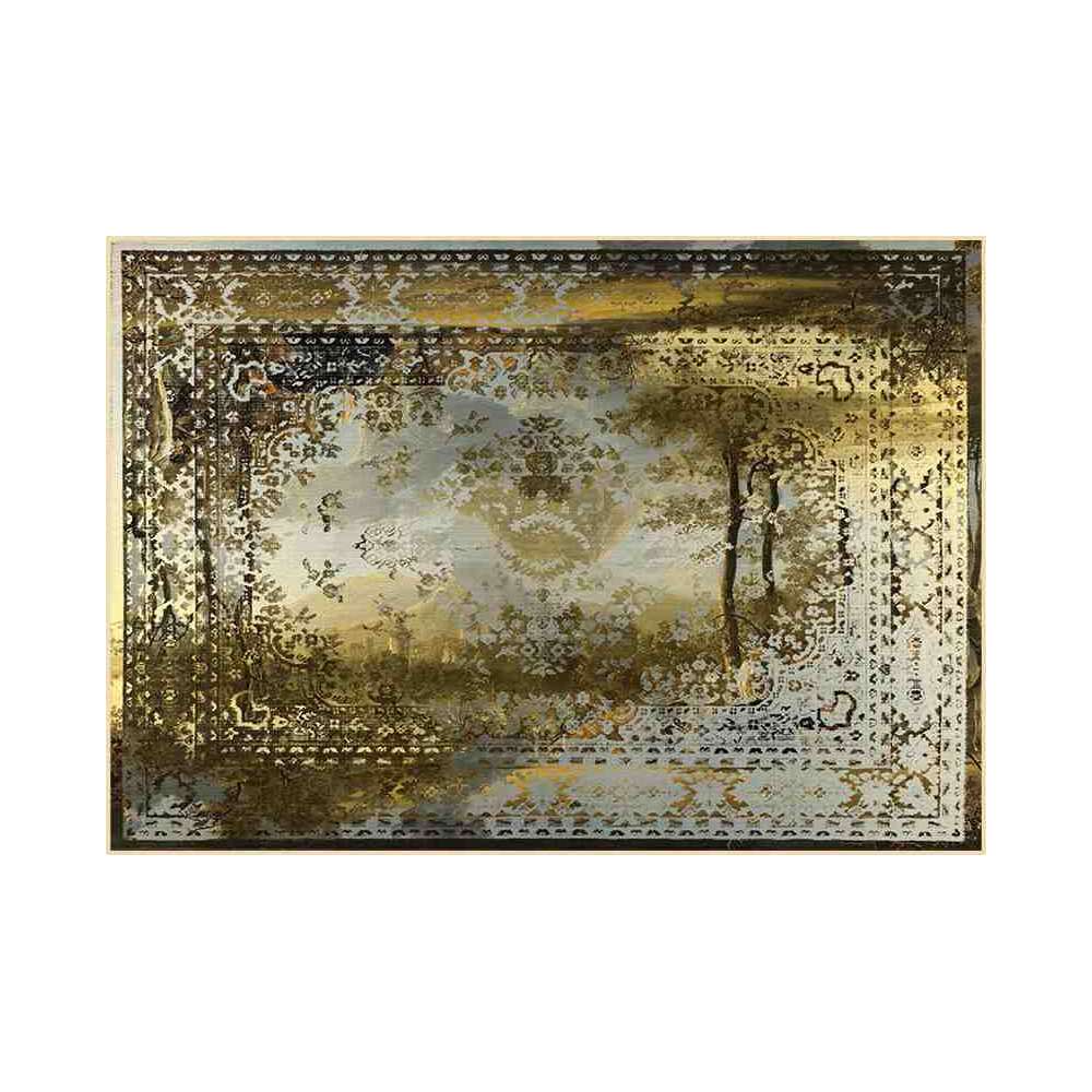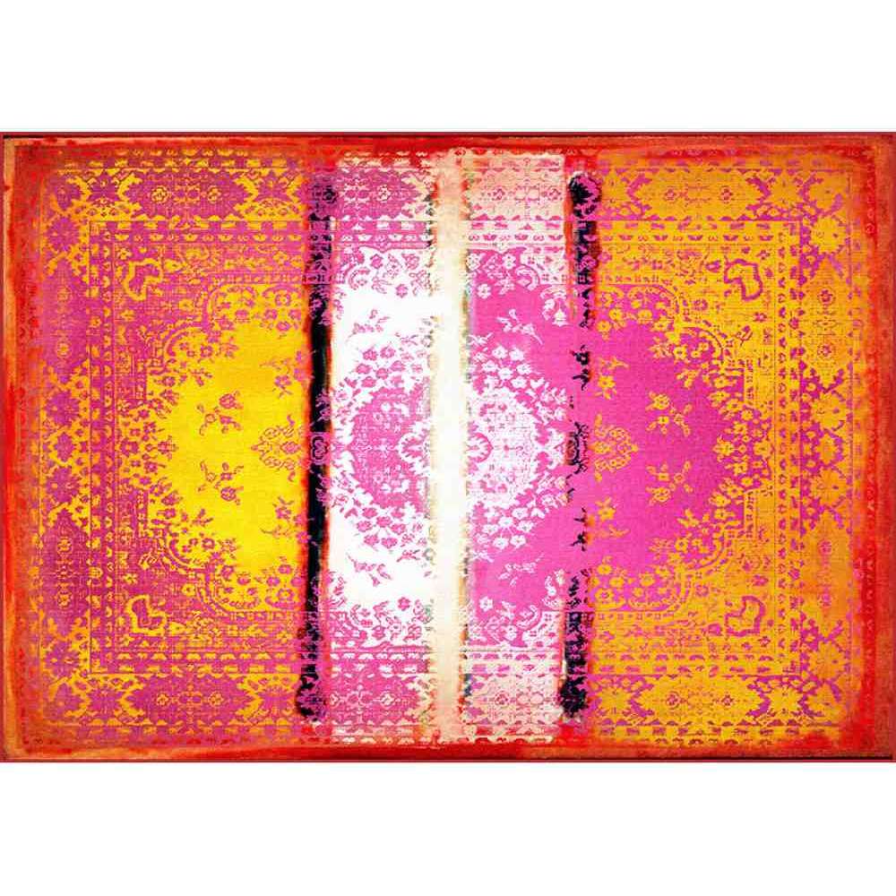 Tradycyjny perski dywan „Kashan” został poddany obróbce Young & Battaglia w żywej cyfrowej remiksie, który łączy perski wzór z kolorami i teksturami inspirowanymi współczesnymi obrazami abstrakcyjnymi i pop-artem z lat 60. XX wieku.