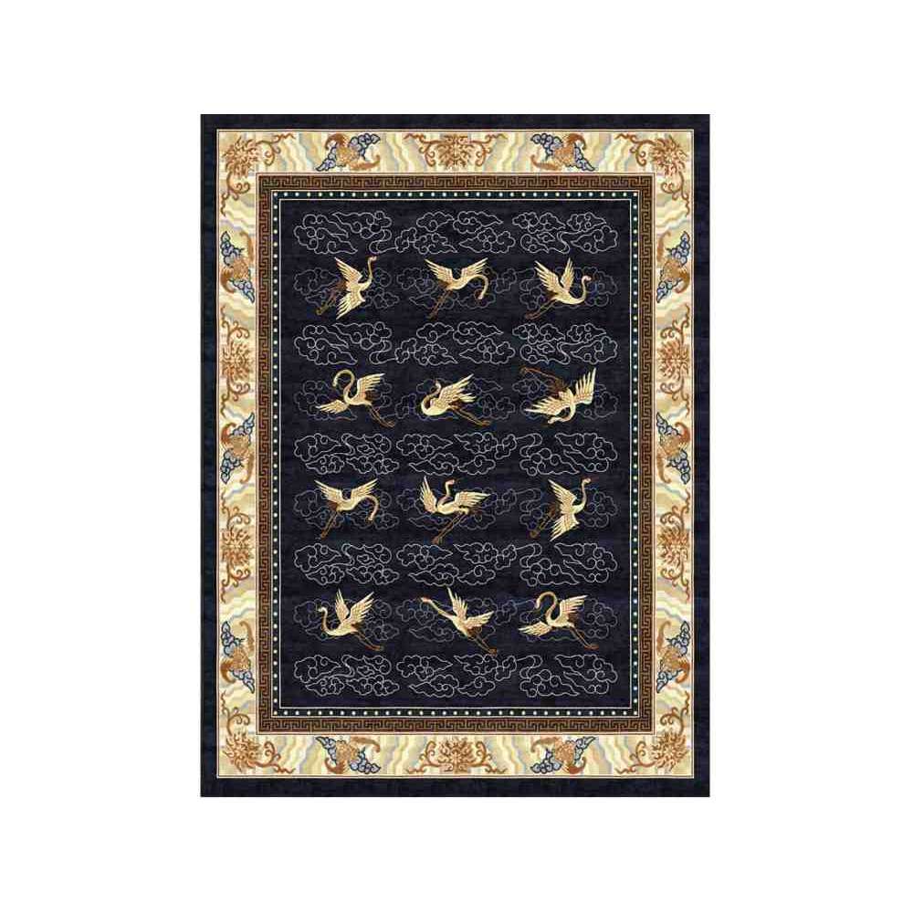 Zobacz większe Ręcznie wykonany prostokątny dywanik Tapis Rouge MANCHURIAN CRANES INDIGO