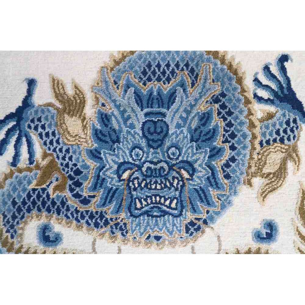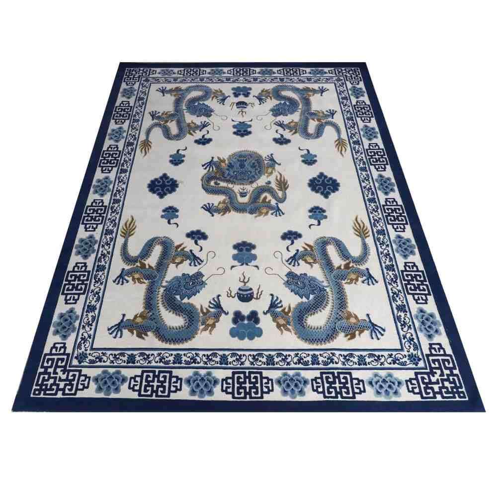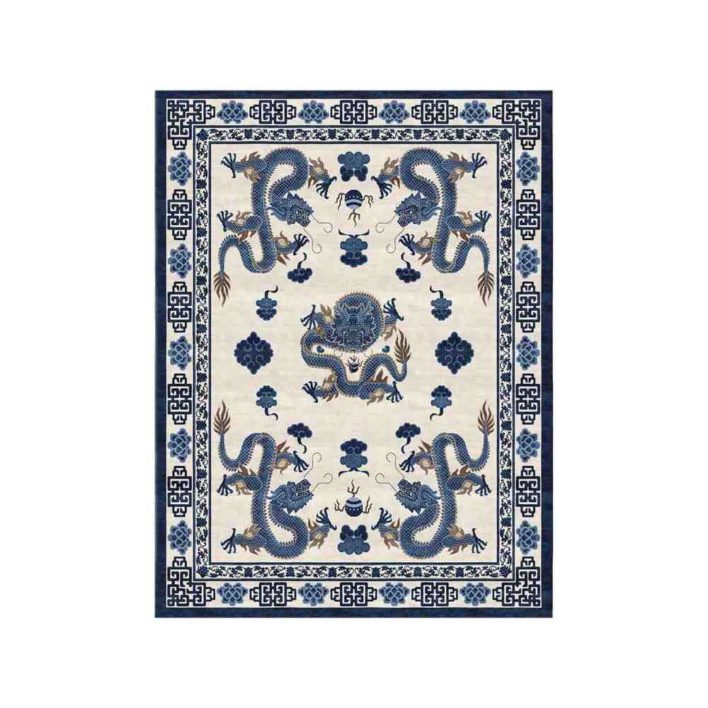 Ręcznie wykonany prostokątny dywanik Tapis Rouge TEMPLE CEREMONY CHINESE BLUE