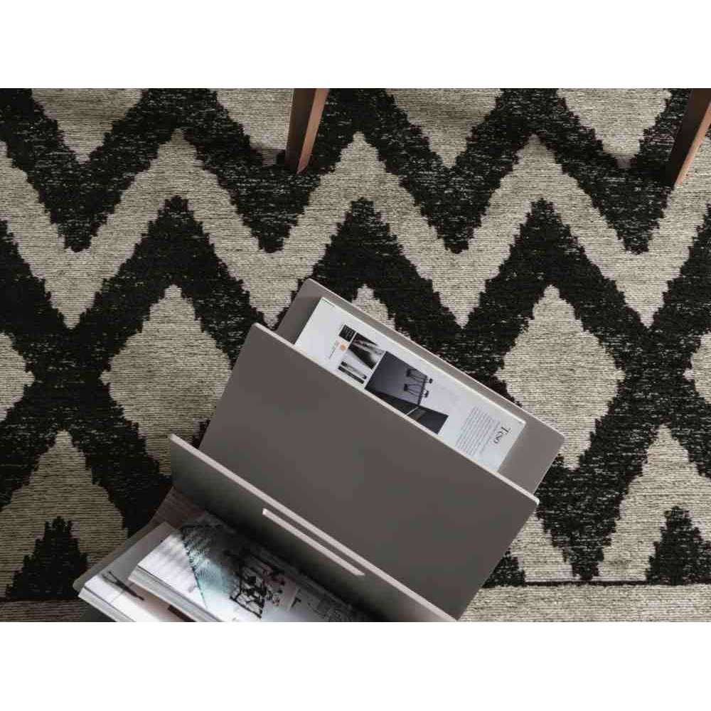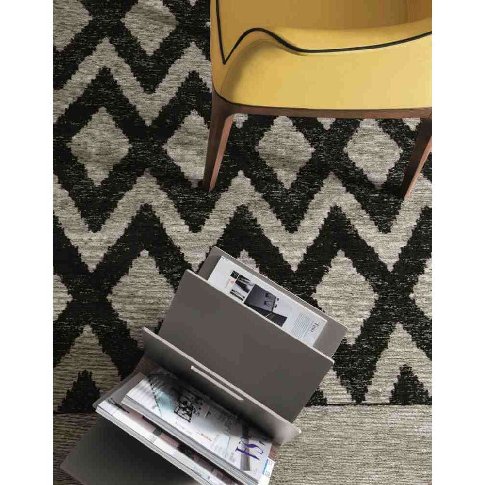 Giotto to czarno-biały dywan z frędzlami i wzorem w romby, tkany maszynowo.
