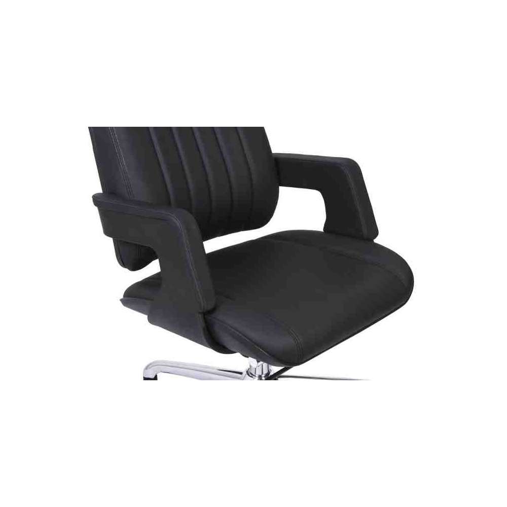 Modum to fotel gabinetowy z czarnej ekoskóry i chromowanej metalowej podstawy. Fotel posiada regulowaną wysokość siedziska oraz funkcję bujania z blokadą.