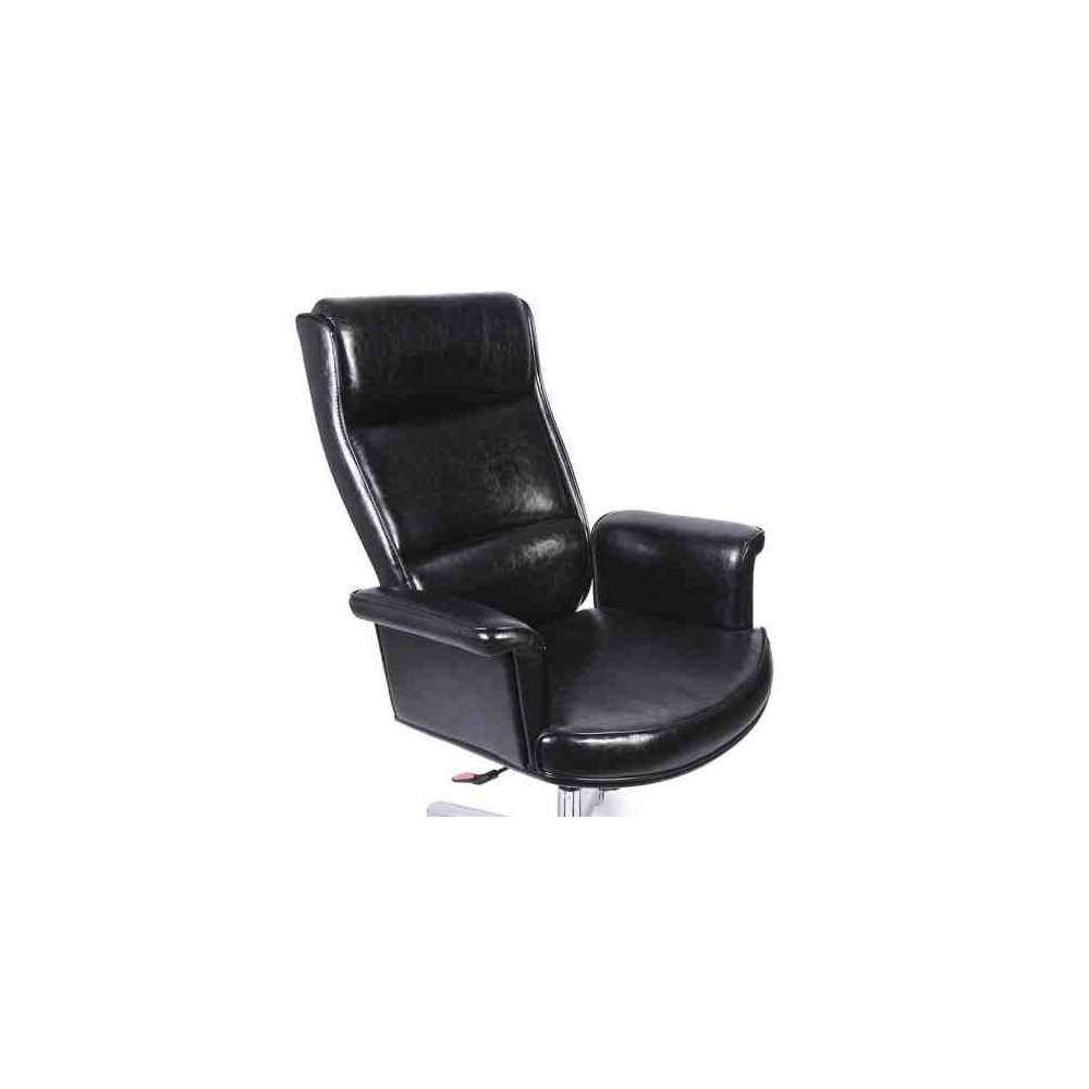 Studio to fotel gabinetowy z ekoskóry w kolorze czarnym i brązowym, z chromowaną metalową podstawą. Fotel wyposażony jest w siedzisko o regulowanej wysokości i pochyleniu, z funkcją blokady oscylacji.