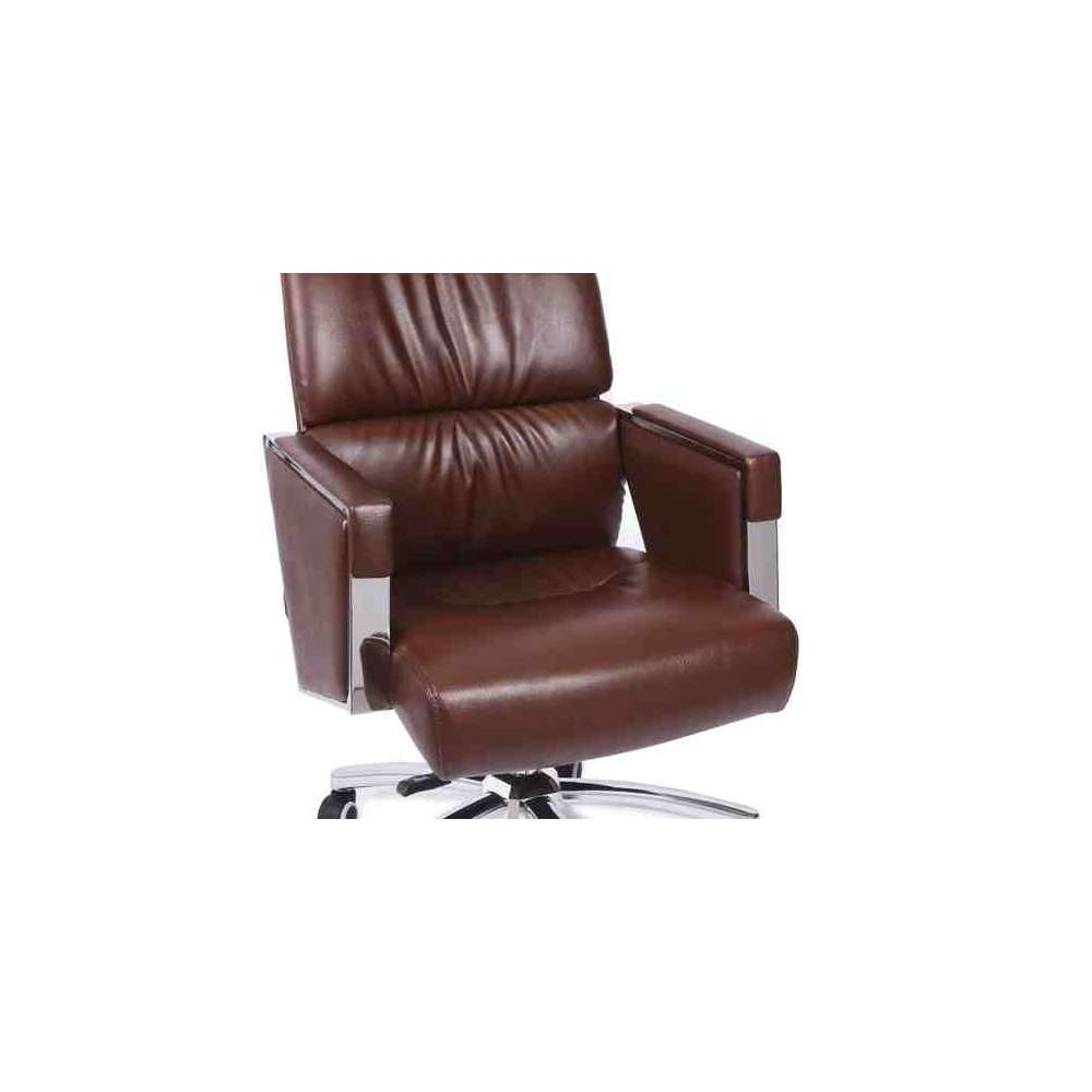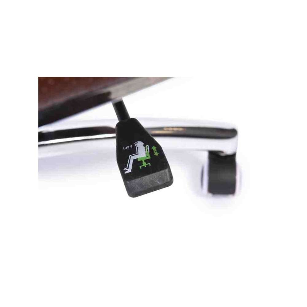 Triumph to ergonomiczny fotel biurowy z ekoskóry w kolorach brązu i czerni, podstawa z metalu chromowanego. Fotel posiada funkcję regulowanej wysokości siedziska oraz funkcję bujania z blokadą.