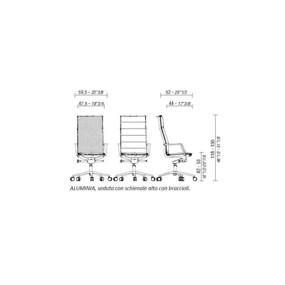 Aluminia to gama siedzeń silnie charakteryzujących się krętym kształtem, honorującym historyczną pamięć wzornictwa.Aluminiowy profil na krawędzi siedziska uwydatnia podstawową konstrukcję i ergonomiczną formę. wersja skórzana jest zgodna z najwyższymi standardami jakości. Aluminium nadaje się do różnych kontekstów i dlatego jest idealnym rozwiązaniem do biurek dla kadry kierowniczej i stołów konferencyjnych.