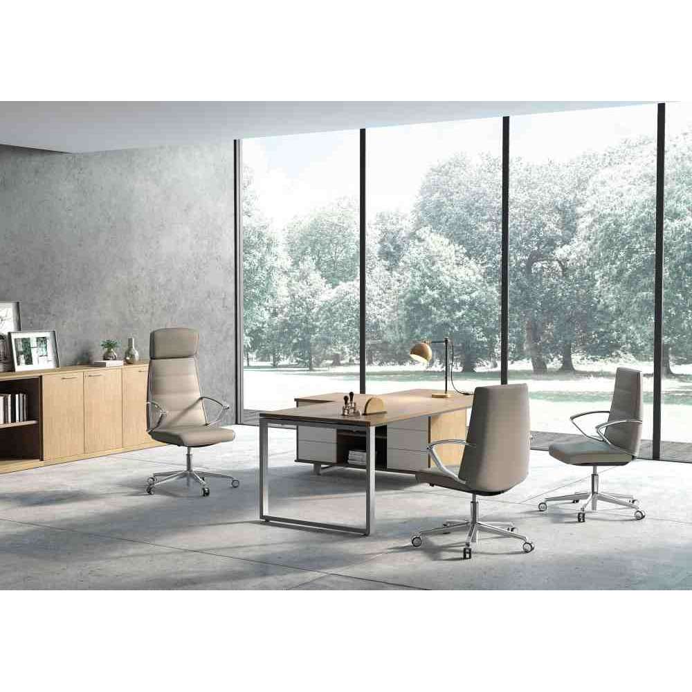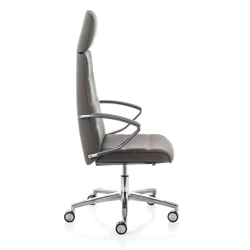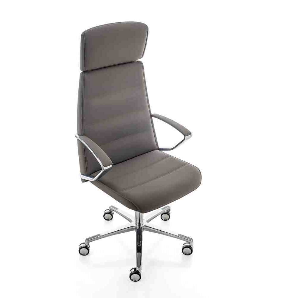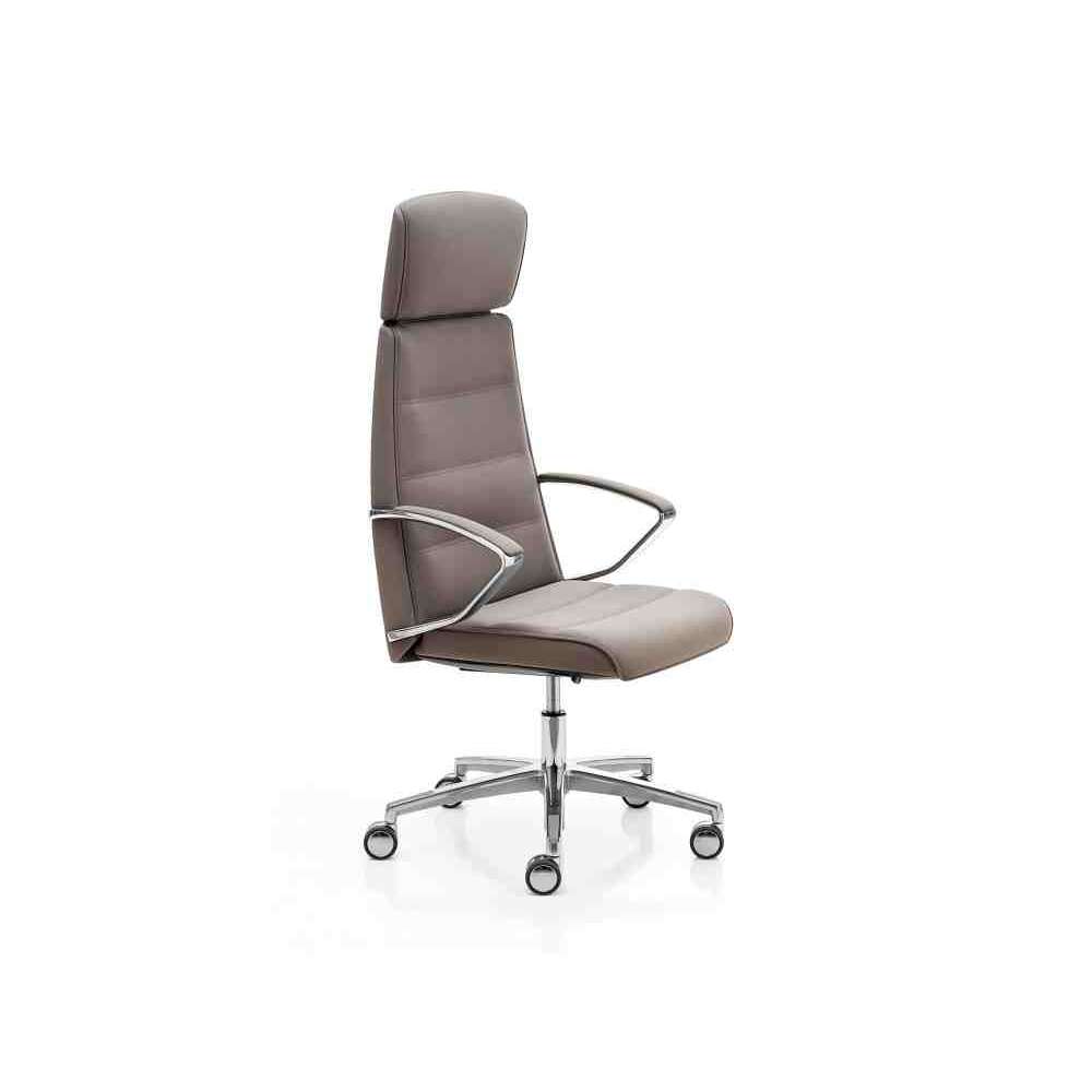 Fotel Executive z wysokim i środkowym oparciem, tapicerka dostępna bez przeszyć lub z przeszyciami liniowymi. Nowy mechanizm synchroniczny i samoważący jest zintegrowany z siedzeniem i jest wyposażony w proste i funkcjonalne regulacje. Ramiona mocowane są w oparciu i wykonane z polerowanego aluminium z tapicerowanym blatem.