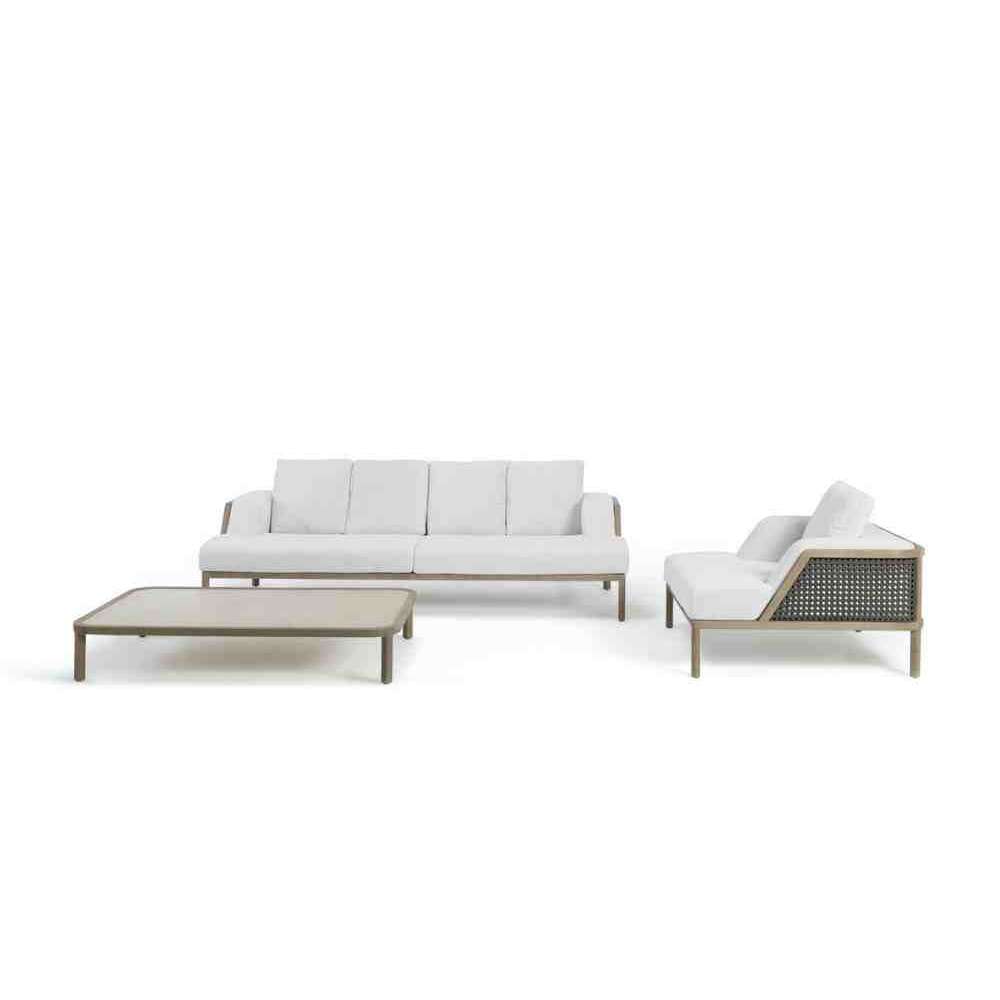 GRAND LIFE uosabia standardy doskonałości produkcyjnej, łącząc rzemieślniczą jakość i innowacyjność z komfortem i designem. Ta kolekcja oferuje sofy i duże fotele o zdecydowanej, czystej i niezbędnej architekturze oraz z drobiazgowymi i delikatnymi detalami; meble, które ujawniają krawiecki duch i reprezentują nową filozofię życia na świeżym powietrzu.