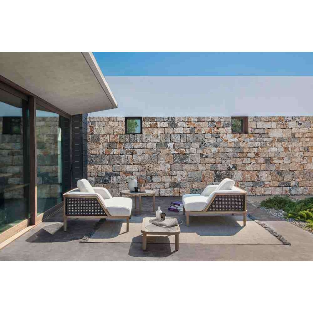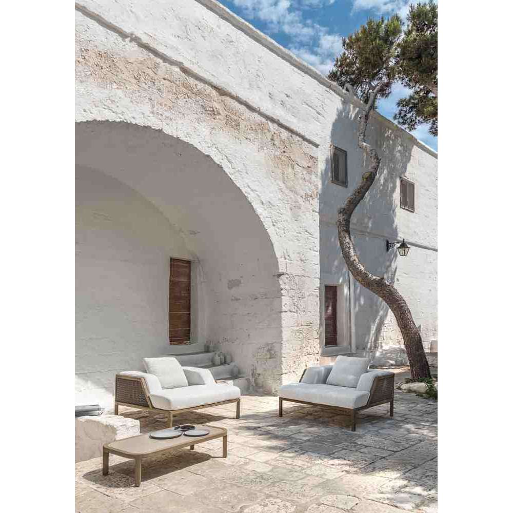 Ethimo, Christophe Pillet, Grand Life, Meble ogrodowe, Fotele ogrodowe, Fotele ogrodowe, Fotele ogrodowe w stylu współczesnym, Fotele ogrodowe z tkaniny, Fotele ogrodowe z drewna, Fotele ogrodowe z drewna tekowego, Fotele ogrodowe z włókna naturalnego, Fotele ogrodowe z liny, Fotele ogrodowe z podłokietnikami, Ogród tapicerowany fotele