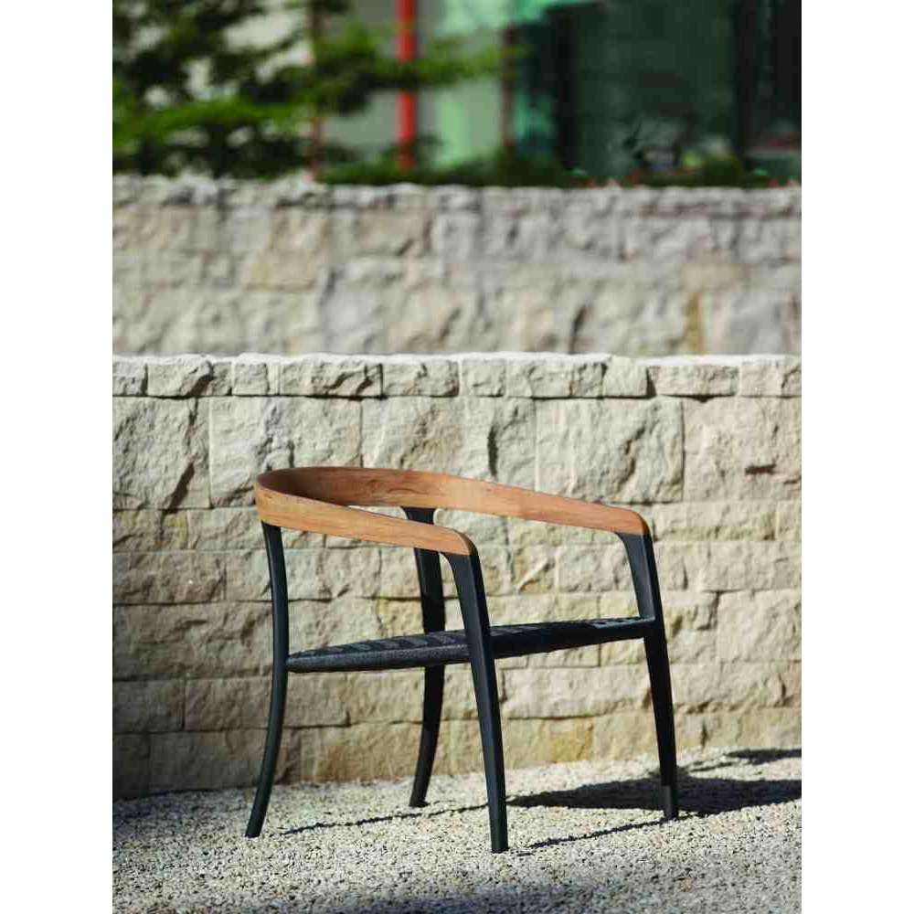 Jive to fotel ogrodowy z siedziskiem Olefin i drewnianym oparciem.