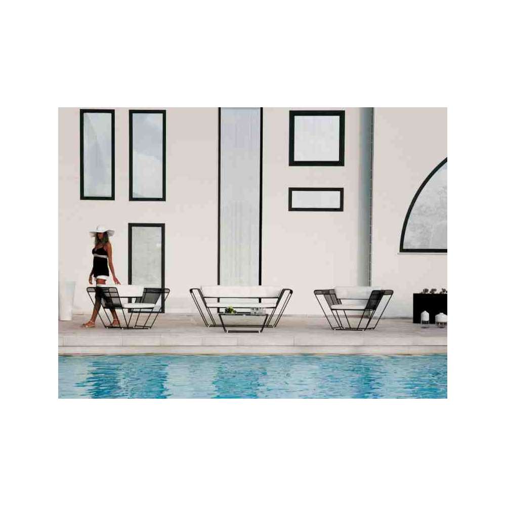 Konstrukcja została zaprojektowana tak, aby podstawa, ciaśniejsza, została maksymalnie oczyszczona i pozostawiła w centrum uwagi obszerne i przyjemne siedzisko, miłe dla oka i wygodne, aby cieszyć się najlepszymi chwilami relaksu.