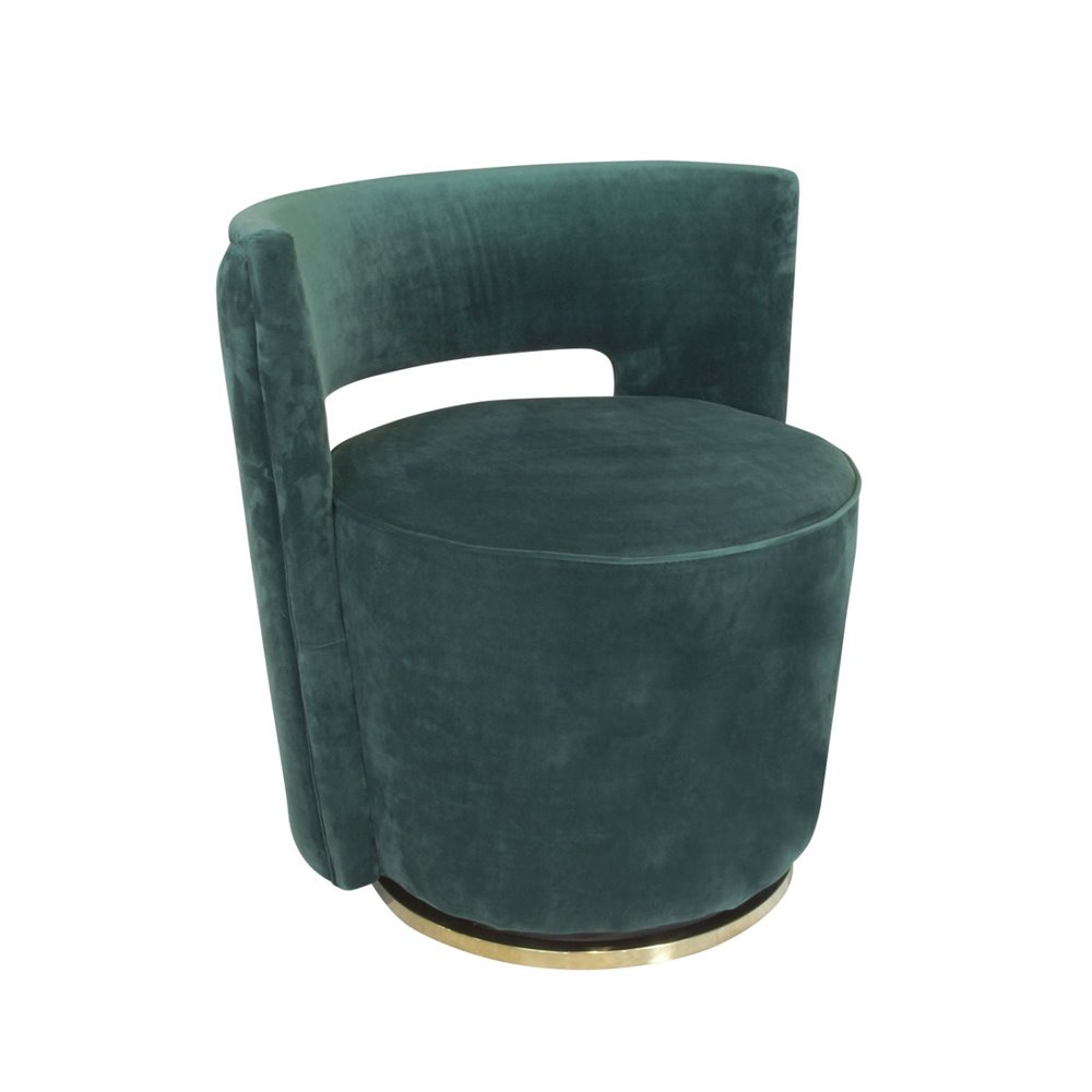 Swan fantastyczny fotel tapicerowany zielonym welurem na złotej metalowej podstawie 58/65/69 cm