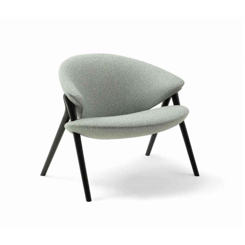 „Zespół rzeźbiarski tańczy na delikatności nóg.” Fotel widziany z przodu przywołuje ideę otwartej skorupy, ucieleśnionej przez miękkie siedzisko i oparcie, z ich otaczającymi i hojnymi krzywiznami. Wyściełane elementy poliuretanowe skrywają stalową ramę na nogach z litego drewna. Niczym kolczyk, przednie nogi przechodzą przez poduszkę siedzenia, zanim połączą się z tylnymi nogami, tworząc charakterystyczny efekt lekkiej konstrukcji. Od tyłu fotel nabiera większej objętości i osobowości.