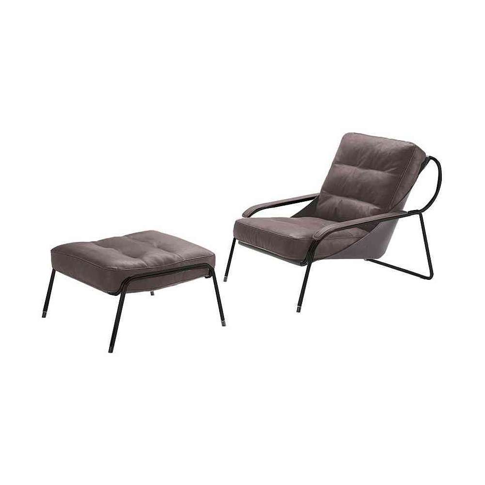 O 18 mm, 18/8 polerowana lub malowana na czarno stalowa rama rurowa, lub z naturalnym lub czarnym nikiel-satyna. Chusta ze skóry bydlęcej pigmentato 90. Poduszka oparcia w 100% nowych gęsich pierzach w sekcjach. Poduszka siedziska tapicerowana poliuretanem/Dacron Du Pont w sekcjach. Stały wewnętrzny bawełniany pokrowiec. Pokrycie zewnętrzne, poduszki i podłokietniki z Ecofire lub skóry.