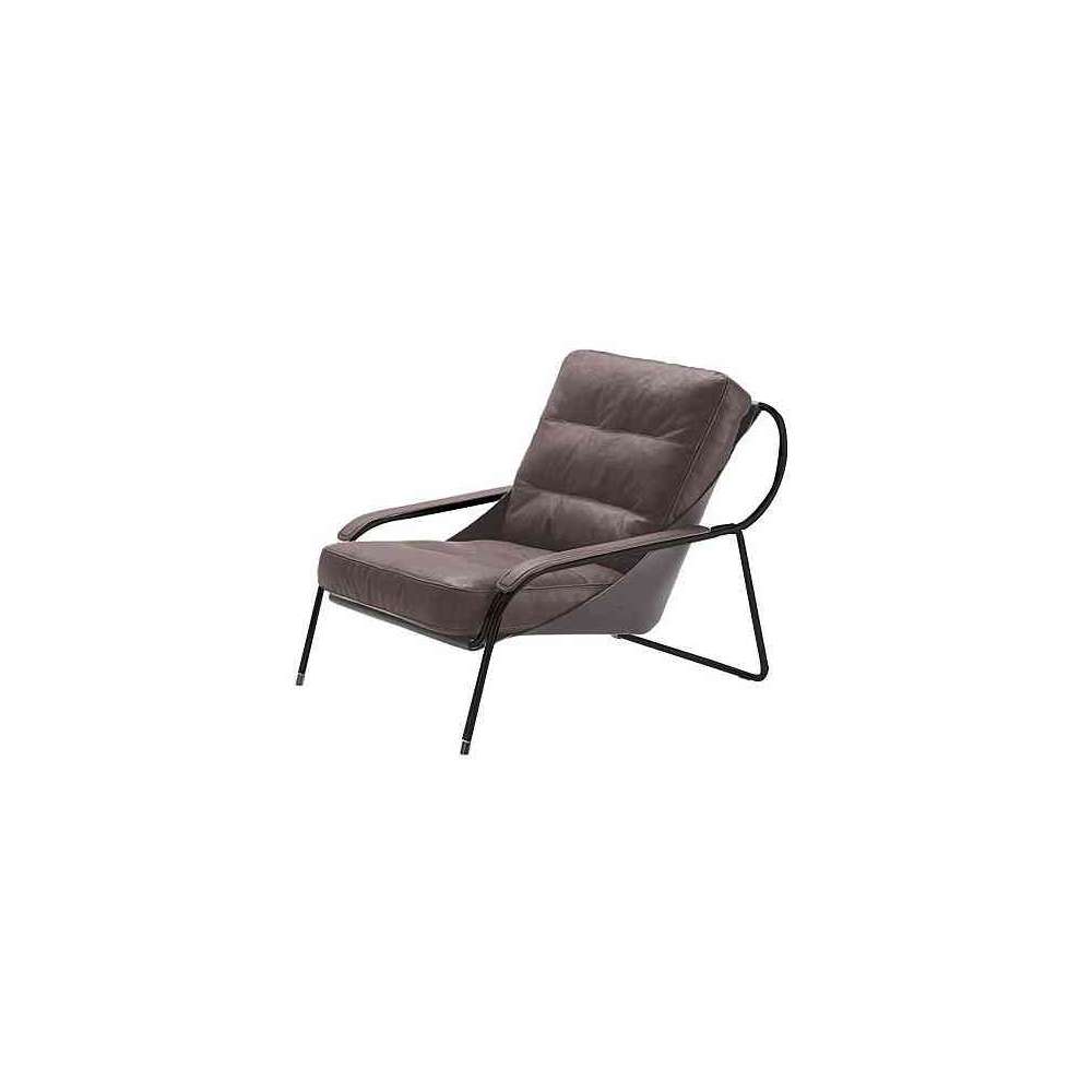 O 18 mm, 18/8 polerowana lub malowana na czarno stalowa rama rurowa, lub z naturalnym lub czarnym nikiel-satyna. Chusta ze skóry bydlęcej pigmentato 90. Poduszka oparcia w 100% nowych gęsich pierzach w sekcjach. Poduszka siedziska tapicerowana poliuretanem/Dacron Du Pont w sekcjach. Stały wewnętrzny bawełniany pokrowiec. Pokrycie zewnętrzne, poduszki i podłokietniki z Ecofire lub skóry.
