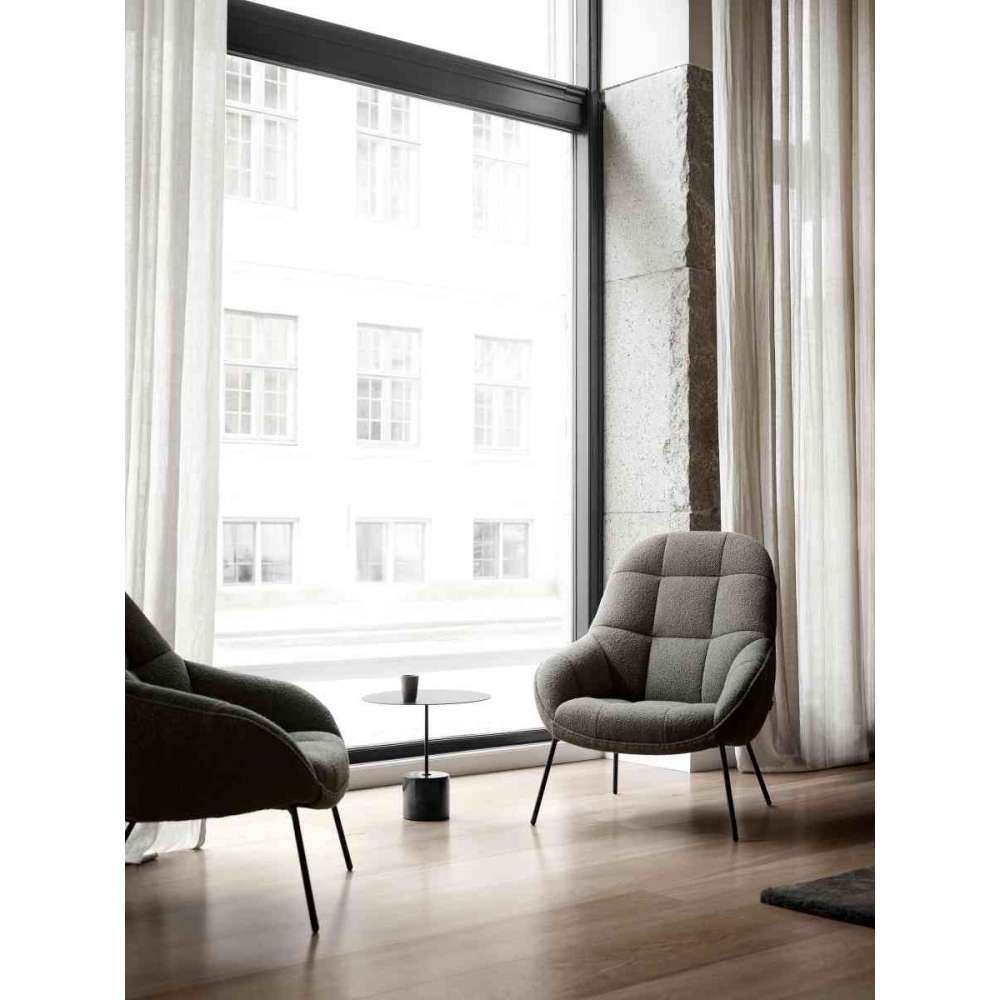 Stelaż wykonany z litego drewna i płyty MDF z systemem sprężyn parcianych. Wysokoelastyczna pianka poliuretanowa o zmiennej gęstości. Wysokoelastyczna pianka poliuretanowa o zmiennej gęstości. Na wierzchu owijka z wypełnieniem włóknistym. Wysokoelastyczna pianka poliuretanowa o zmiennej gęstości. Na wierzchu owijka z wypełnieniem włóknistym. Naprawiony. Stal malowana proszkowo na czarno. W sprawie konserwacji tkaniny skontaktuj się ze sprzedawcą