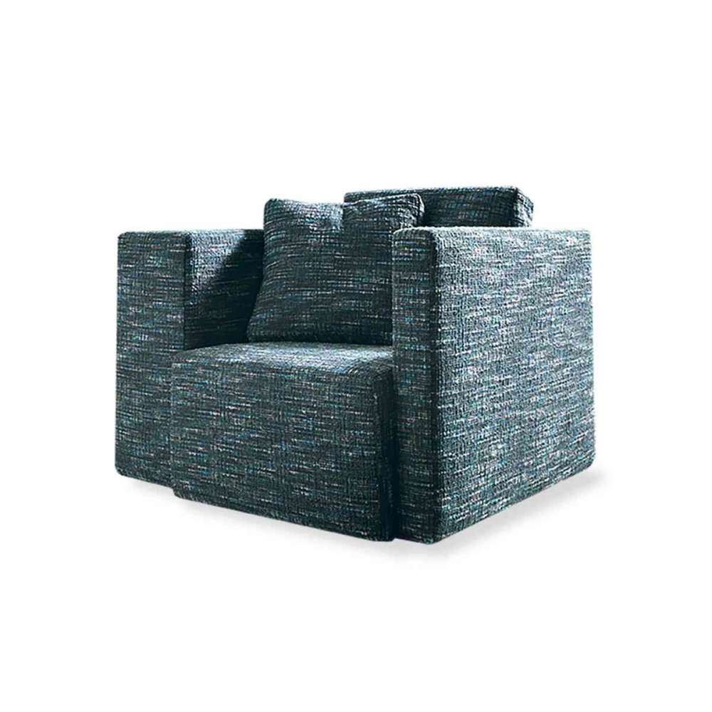 Fotel Scarlet charakteryzuje się wyjątkową asymetrią podłokietników oraz zmywalną i wyjmowaną melanżową tkaniną. Idealny do dekoracji komfortowych poczekalni lub codziennego relaksu.