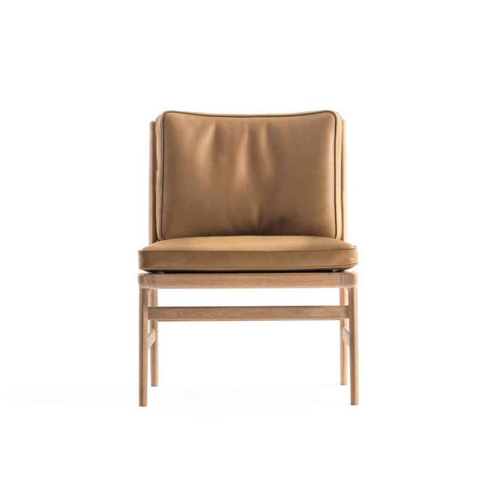 Posiada nową konstrukcję krzesła, której uzupełnieniem jest przymocowanie poduszek do kompletnej drewnianej ramy. Przekroje przednich i tylnych nóg są owalne, dzięki czemu od przodu krawędzie nóg mają cienkie linie, dzięki czemu wyglądają ostro, a z boku owalny kształt sprawia, że krzesło wygląda miękko, z całą ramą jest płynnie podłączony. Również ramy oparcia i siedziska są wzmocnione kilkoma kawałkami litego drewna i spełniając funkcjonalną rolę zabezpieczenia poduszek, jednocześnie sprawiają, że krzesło wygląda na dobrze zaprojektowane. miękkie i płynnie połączone dla nowoczesnego wzornictwa.