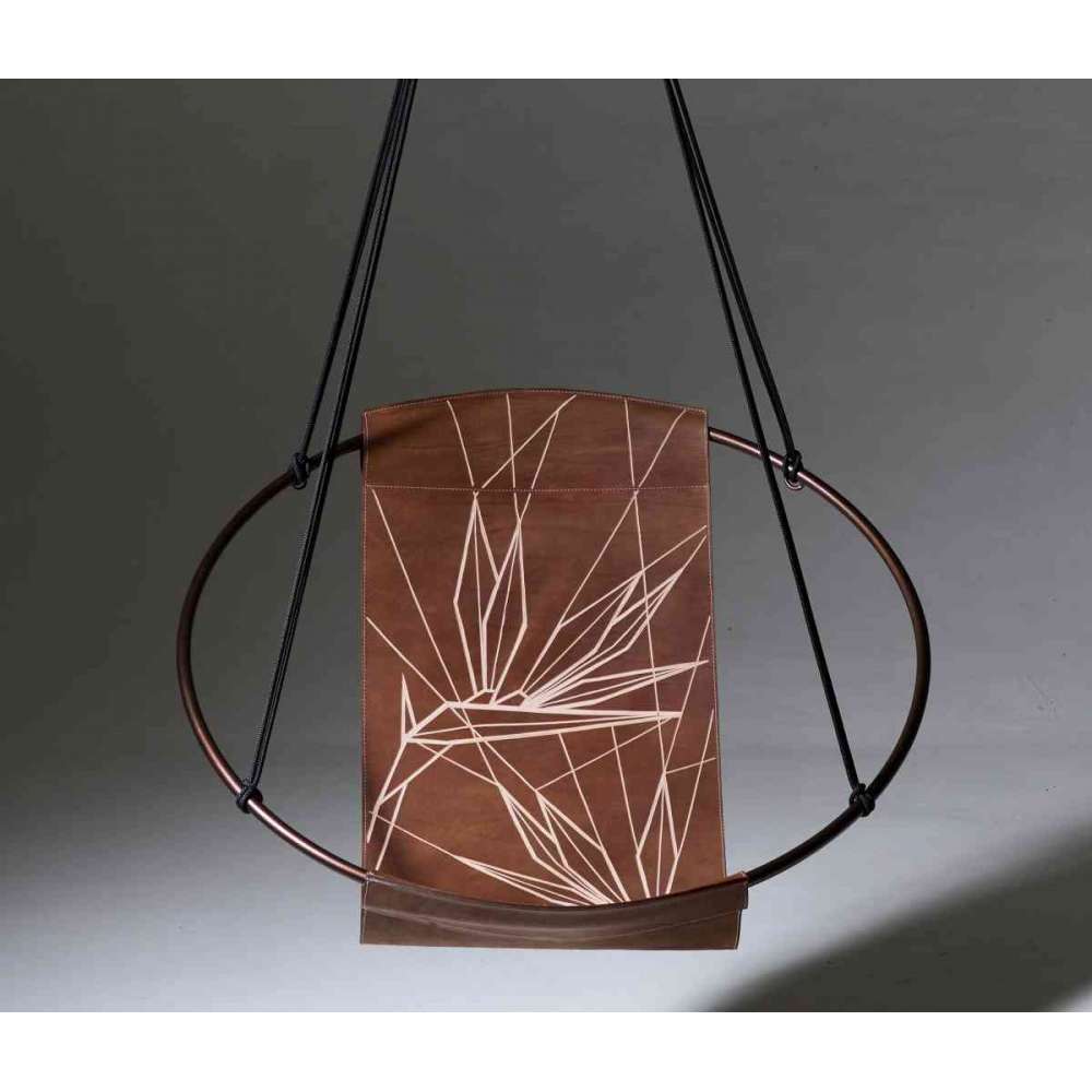 Odarty z wszelkich nadmiarów, to wiszące krzesło ma okrągłą ramę z luźno wiszącymi arkuszami skóry, aby stworzyć eleganckie, seksowne i bardzo wygodne doznania. Czyste linie i lekkość tego krzesła sprawiają, że idealnie pasuje do każdego wnętrza. To krzesło jest ulubionym wyluzowanym.