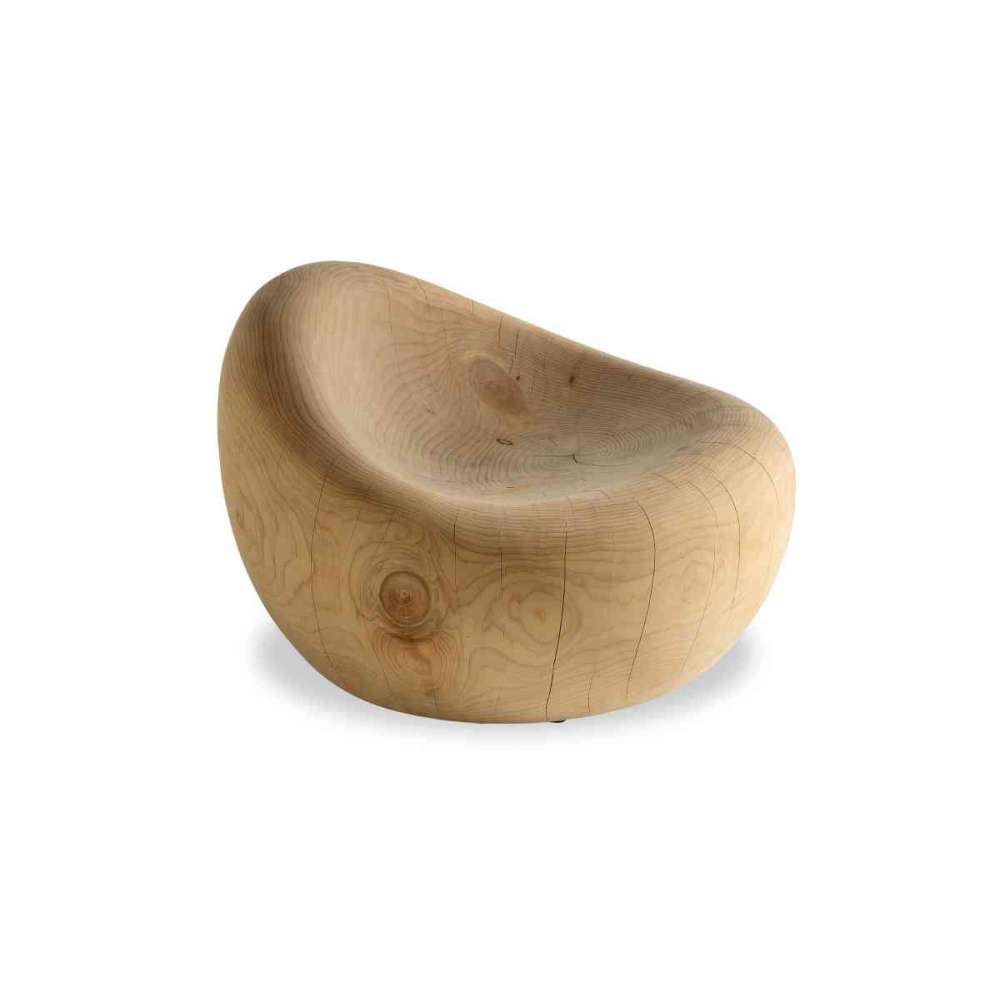 Fotel wykonany z jednego bloku pachnącego cedru. Rzeźbiony monolit o zakrzywionym i falistym kształcie. Posiada ergonomiczne siedzisko w ciągłej linii z oparciem. Dostępne z podstawą lub bez, z rurowymi nogami i żelazną płytą.