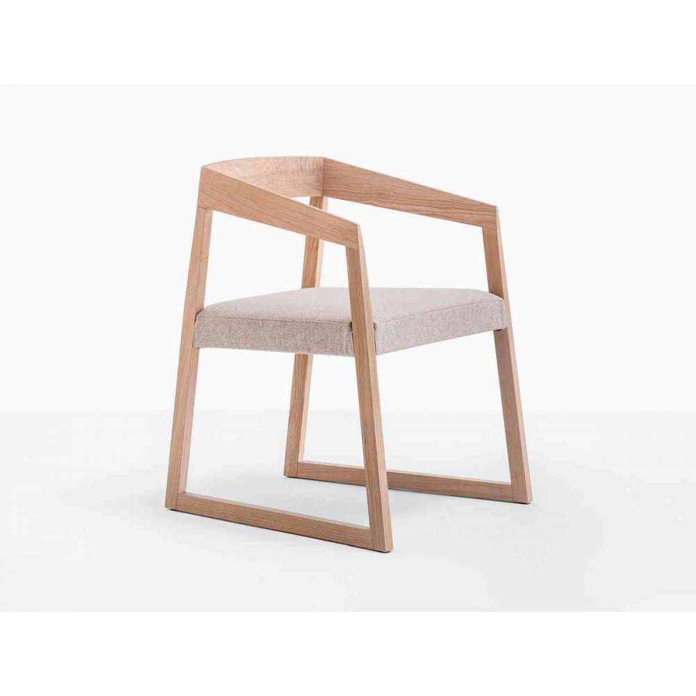 Fotel Sign jest dostępny w wersji z litego drewna dębowego lub orzechowego. Jego rama jest cienka, ale wygodna, dzięki zwężającym się podłokietnikom, które charakteryzowały fotel z liniowością, ale jednocześnie pełną detali. Tapicerowane siedzisko.