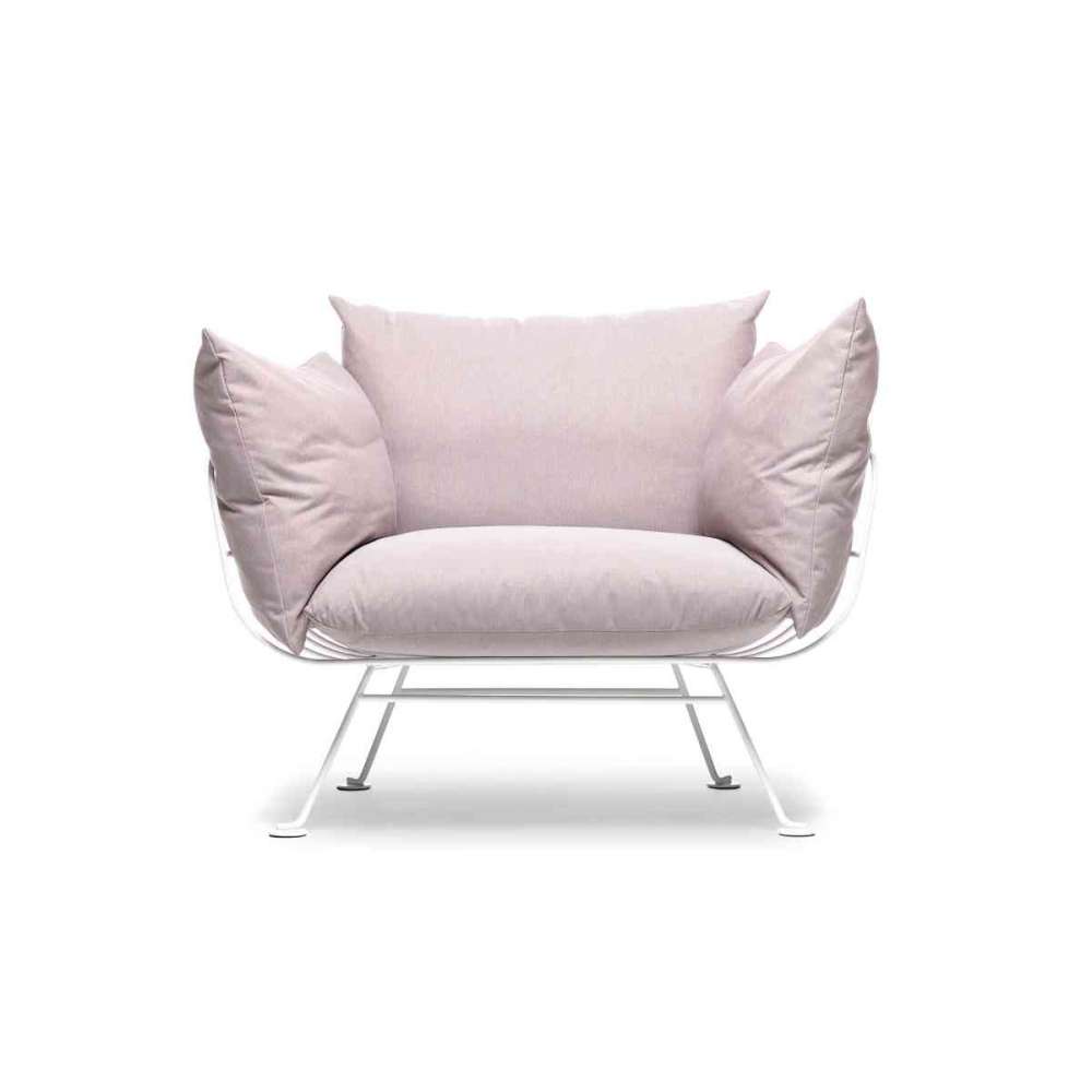 Liniowa, przezroczysta metalowa konstrukcja sofy Nest i fotela Nest podnosi najgrubsze i najdelikatniejsze poduszki z podłogi, tworząc wygodne, podwyższone gniazdo dla jednej lub więcej osób. Wyprowadź swoje wygodne Gniazdo na zewnątrz i zamieszkaj tam, gdzie chcesz. Sofa i Fotel Nest są dostępne ze specjalną poduszką zewnętrzną.