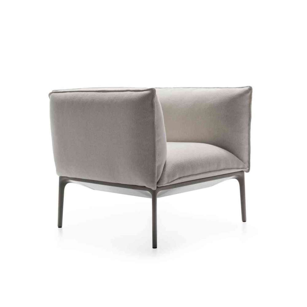 Fotel i sofy o mocnym wizerunku z dużymi poduszkami siedzisk, które zapewniają wysoki komfort i funkcjonalność. Biała lub czarna lakierowana rama z ekstrudowanego aluminium z elastycznymi paskami, pokryta i zabezpieczona warstwą polieteru, nogi z odlewanego ciśnieniowo aluminium.