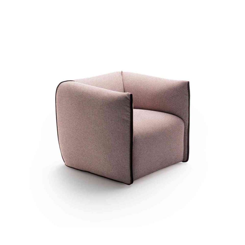 Mia wyróżnia się zaokrąglonymi liniami, otaczającym siedziskiem oraz miękkim i przytulnym wybrzuszeniem podłokietnika i oparcia, które przypomina złożone poduszka.