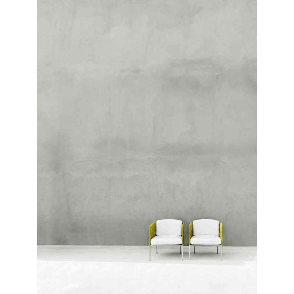 Poduszki siedziska i oparcia z pianki poliuretanowej o otwartych komórkach i pokryte włóknem akrylowym do użytku na zewnątrz. , nadające się do recyklingu, ekologiczne tuby, nadające się zarówno do wnętrz, jak i na zewnątrz, w kolorach z kolekcji. Ta koronka, zainspirowana starożytną techniką szydełkowania Cantù, przywraca tradycyjne ściegi zwane półściegami i lnianymi ściegami z połączonymi skrętami, odnowione we współczesny sposób, aby stworzyć nowe wzory i wzory dzięki wyjątkowo dużej szpulce i zdecydowanie grubszym niciom.