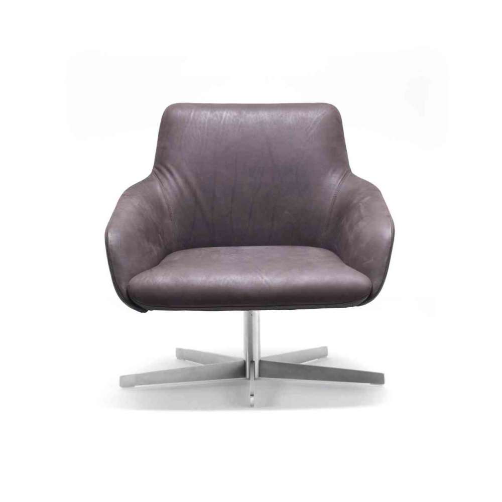 Fotel, bergère i podnóżek ze stalową ramą zatopioną w ekspandowanej na zimno piance poliuretanowej z wkładką Visco-soft „Xtra-pur” i oparciem siedziska z tkanych krzyżowo, powlekanych elastycznych pasków gumowych. Pokrycie z igłowanego, żywicowanego, nietkanego włókna poliestrowego, połączonego z poliamidowym aksamitnym podkładem. Podstawa obrotowa lub stała, ze stali nierdzewnej AISI 304 matowo-satynowej lub, tylko dla wersji obrotowej, z czarną epoksydową powłoką proszkową. Tapicerka z tkaniny lub skóry, tylko wersja z tkaniny jest w pełni zdejmowana za pomocą zamków błyskawicznych i zapięć na rzepy. Głębokość siedziska 57 cm.