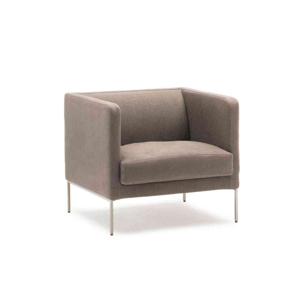 stelaż siedziska, wykonany z rur stalowych 40 x 30 mm, pokryty czarną epoksydową powłoką proszkową i sprężynujący z elastycznymi paskami, osadzony w strukturze podstawy z wielowarstwowego drewna topolowego wyściełanego pianką poliuretanową pokrytą 100% polieterem termicznie związanym z poliamidowym aksamitnym podkładem. Poduszki oparciowe mocowane do konstrukcji poprzez okładziny z pianki poliuretanowej i warstw włókien akrylowych. Pikowane poduszki siedziska z wstępnie wypranego i wysterylizowanego puchu gęsiego, zszyte w osobne przegrody, z wkładką z pianki poliuretanowej o zróżnicowanej gęstości. Nogi z rurek stalowych, połączone wspornikiem, o przekroju kwadratowym 15x15mm z brązową farbą proszkową epoksydową i regulowanymi końcówkami z czarnego PCV. Tapicerka materiałowa lub skórzana, z szytymi szwami tylko na poduszce siedziska, oba w pełni zdejmowane za pomocą zamków błyskawicznych i zapięć na rzepy. Głębokość siedziska: fotel 53 cm