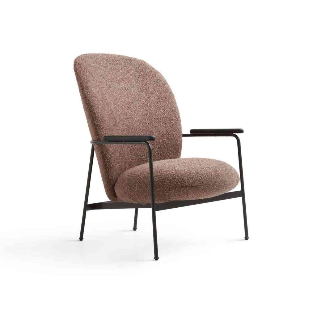 Krzesło Claire z wysokim oparciem i zaokrąglonym kształtem zachęca do wygodnego siedzenia i chwili relaksu. W przeciwieństwie do obszernej tapicerki, metalowa rama jest minimalistyczna, wzmocniona podłokietnikami z litego drewna, które nadają całemu fotelowi uspokajający dotyk. Dzięki tym wyrafinowanym detalom i starannemu eksperymentowaniu z proporcjami i objętościami, Norm Architects starali się stworzyć klasyczny salon do współczesnego życia.