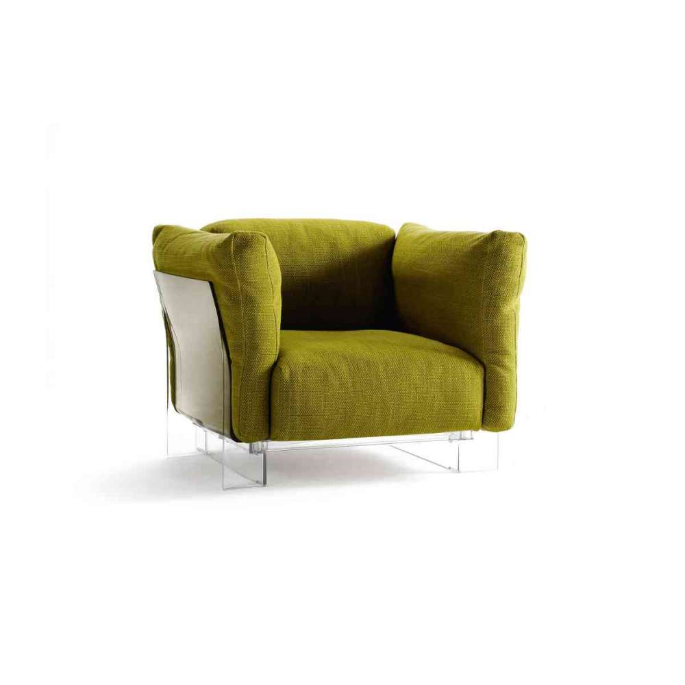 Nowa wersja modułowej sofy Pop: w rzeczywistości trzyosobowa sofa z podwójnym siedziskiem i poduszkami bocznymi jest miękka, przestronna i jeszcze wygodniejsza. Do fotela są też poduszki boczne, które nabierają tego przytulnego „gniazdka”