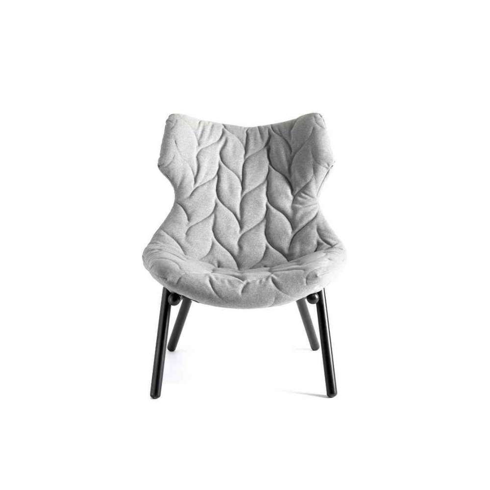 Dialog między naturalną i sztuczną rzeczywistością, Foliage to rodzina krzeseł stworzona specjalnie do użytku domowego i nosząca wyraźny graficzny znak rozpoznawczy Patricii Urquioli. Seria elementów, które wyglądają, jakby rosły naturalnie w plastiku, gdzie liście tworzą koronę spoczywającą na ramie z gałęzi, które praktycznie tworzą siedzisko. Ta dwuosobowa sofa, zaprezentowana w 2011 roku i pełna osobowości, ma miękkie siedzisko z przeszytym haftem, a teraz dołącza do niej mniejszy, przytulny fotel. Przeszycia obejmują całą powierzchnię łącznie z oparciem, aby maksymalnie wykorzystać efekt estetyczny i można je ustawić w dowolnym miejscu w salonie i podziwiać pod każdym kątem.