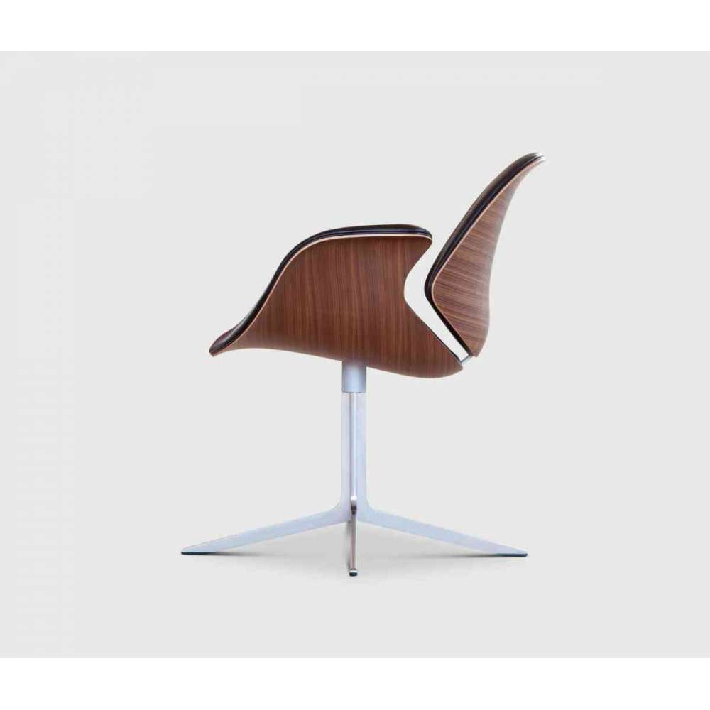 Krzesło jest dostępne w kolorze dębu lub orzecha i jest starannie tapicerowane tkaniną lub skórą na podstawie z formowanej pianki. Krzesło można również zamówić w całości tapicerowane, aby uzyskać jednolity wyraz. Elegancka, czteroramienna, obrotowa podstawa krzesła wykonana jest z odlewanego aluminium z polerowanym wykończeniem.