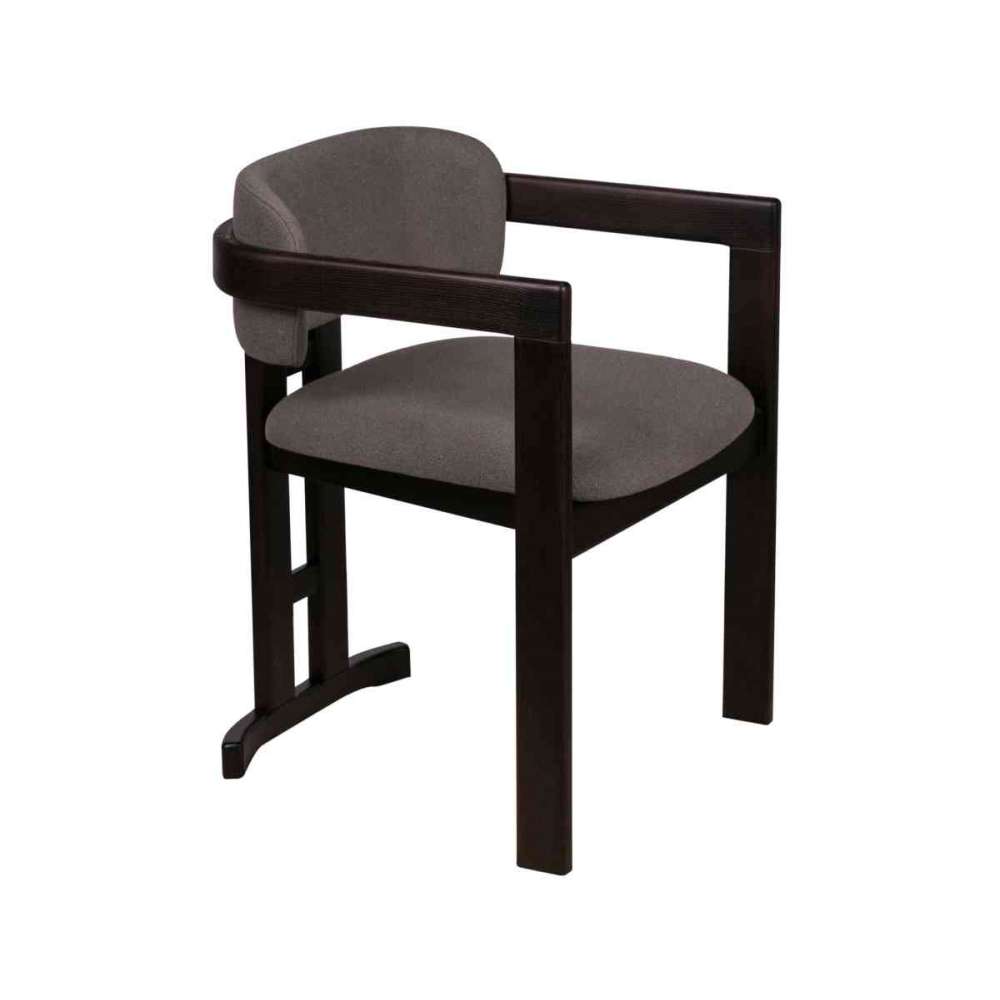 Fotel wypoczynkowy o konstrukcji z litego drewna w wykończeniu Espresso. Kot. I-VI tkaniny i skóry (1,4 m/szt.), możliwe w materiale własnym klienta. Dostępne również w wersji krzesła do jadalni.