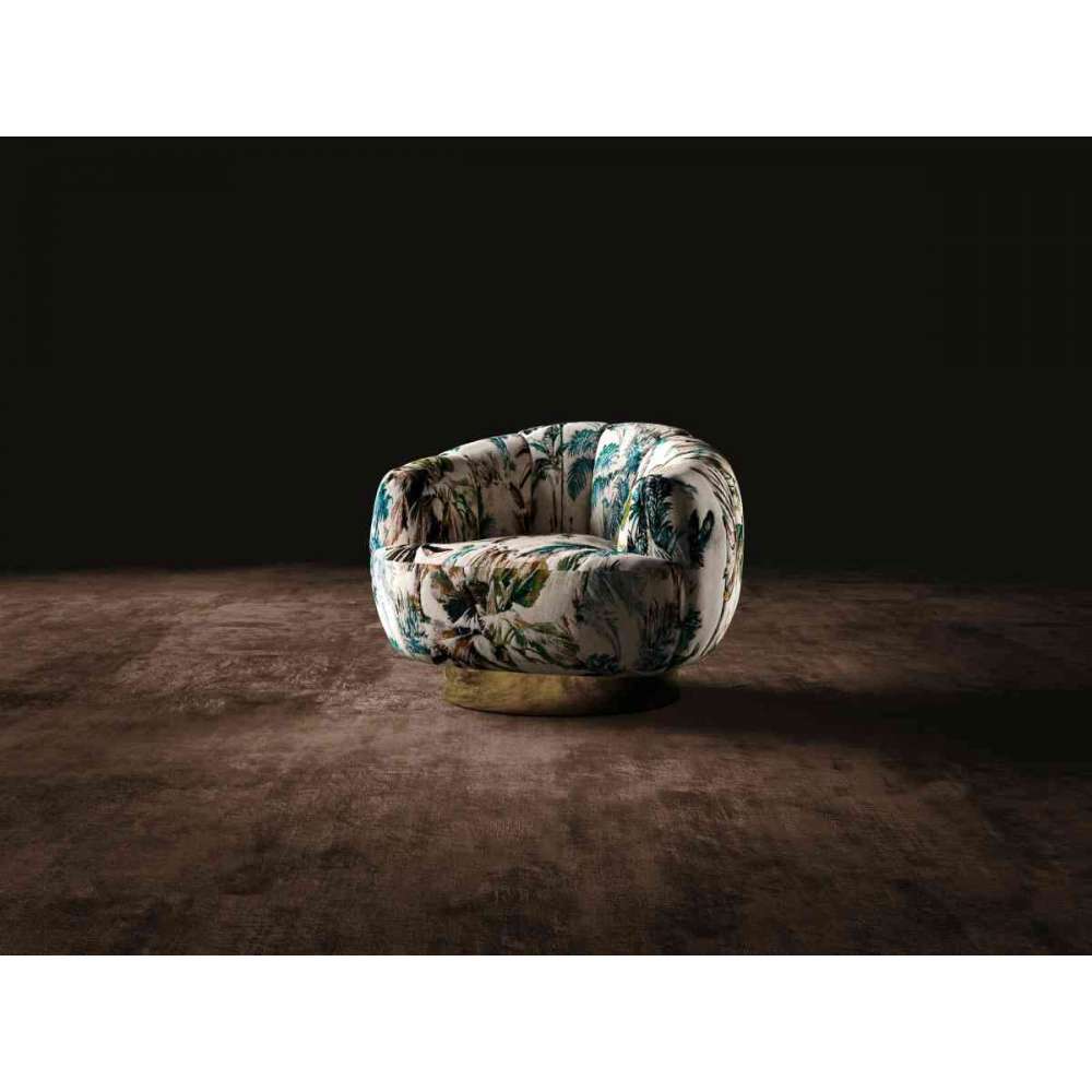 Fotel ORNELLA składa się z drewnianej ramy wyściełanej pianką poliuretanową i pokrytej wierzchnią warstwą włókna akrylowego. Oparcie charakteryzuje się dużymi pionowymi pikowaniami, a elastyczne paski podkreślają komfort siedzenia. Podstawa wykonana jest z matowego, czarnego lakierowanego drewna i może być pokryta metalową obudową z wykończeniami z polerowanego mosiądzu i polerowanej stali. Ornella jest dostępna w całości w tkaninie lub skórze.