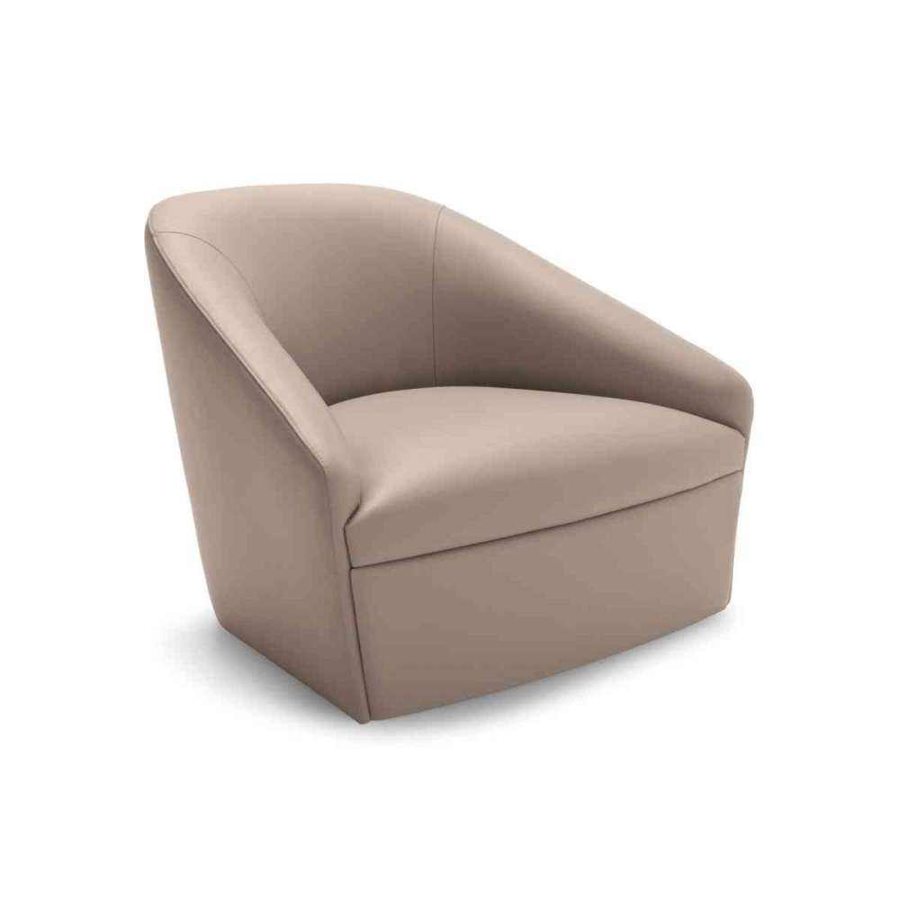 W pełni wyściełane krzesło wypoczynkowe, tapicerowane skórą lub tkaniną. Metalowa rama i trudnopalna pianka poliuretanowa. Podstawa obrotowa dostępna również z automatycznym powrotem.