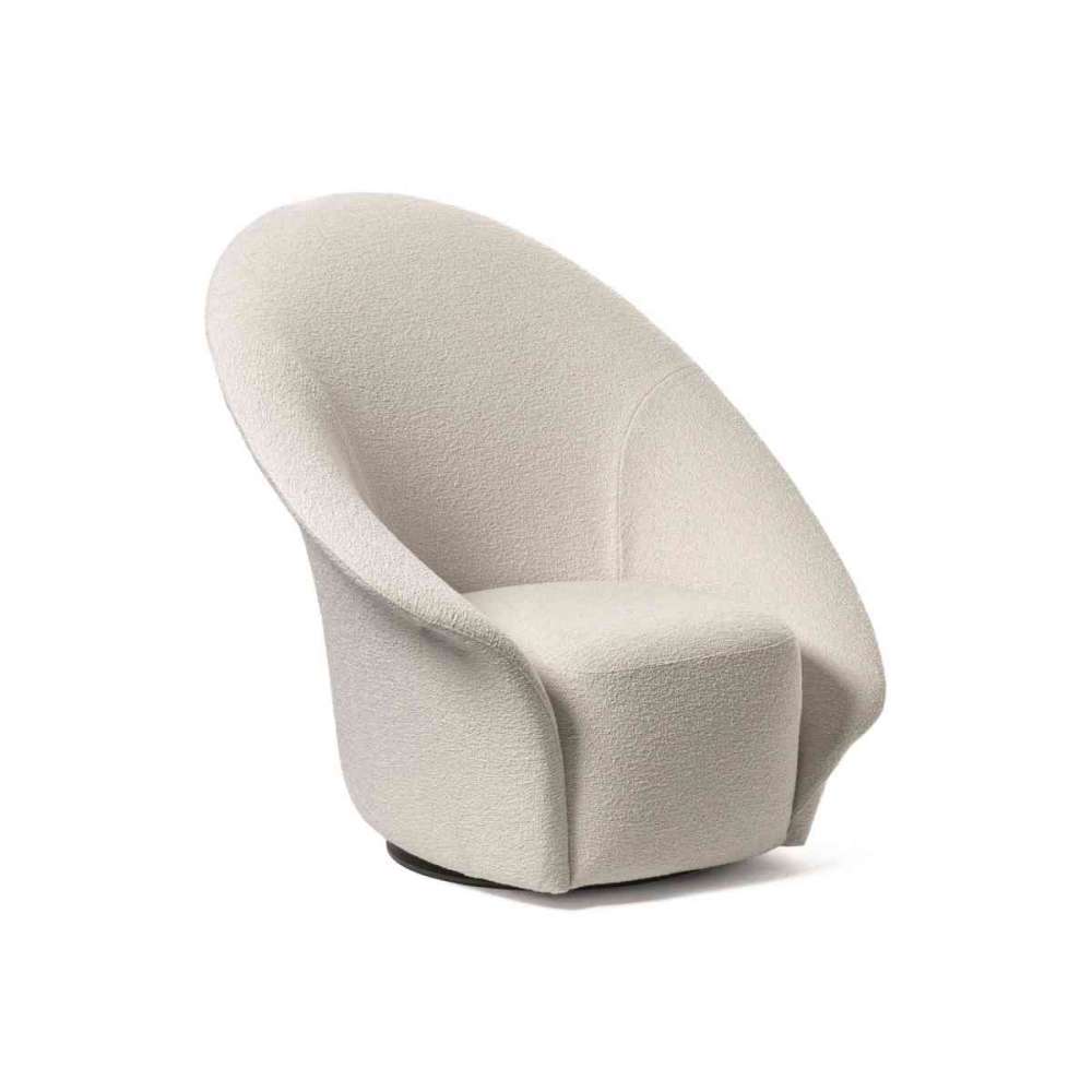 Fotel obrotowy (360°), o miękkim, funkcjonalnym kształcie, który wydaje się pochodzić naturalnie z właśnie rozkwitłego kwiatu.